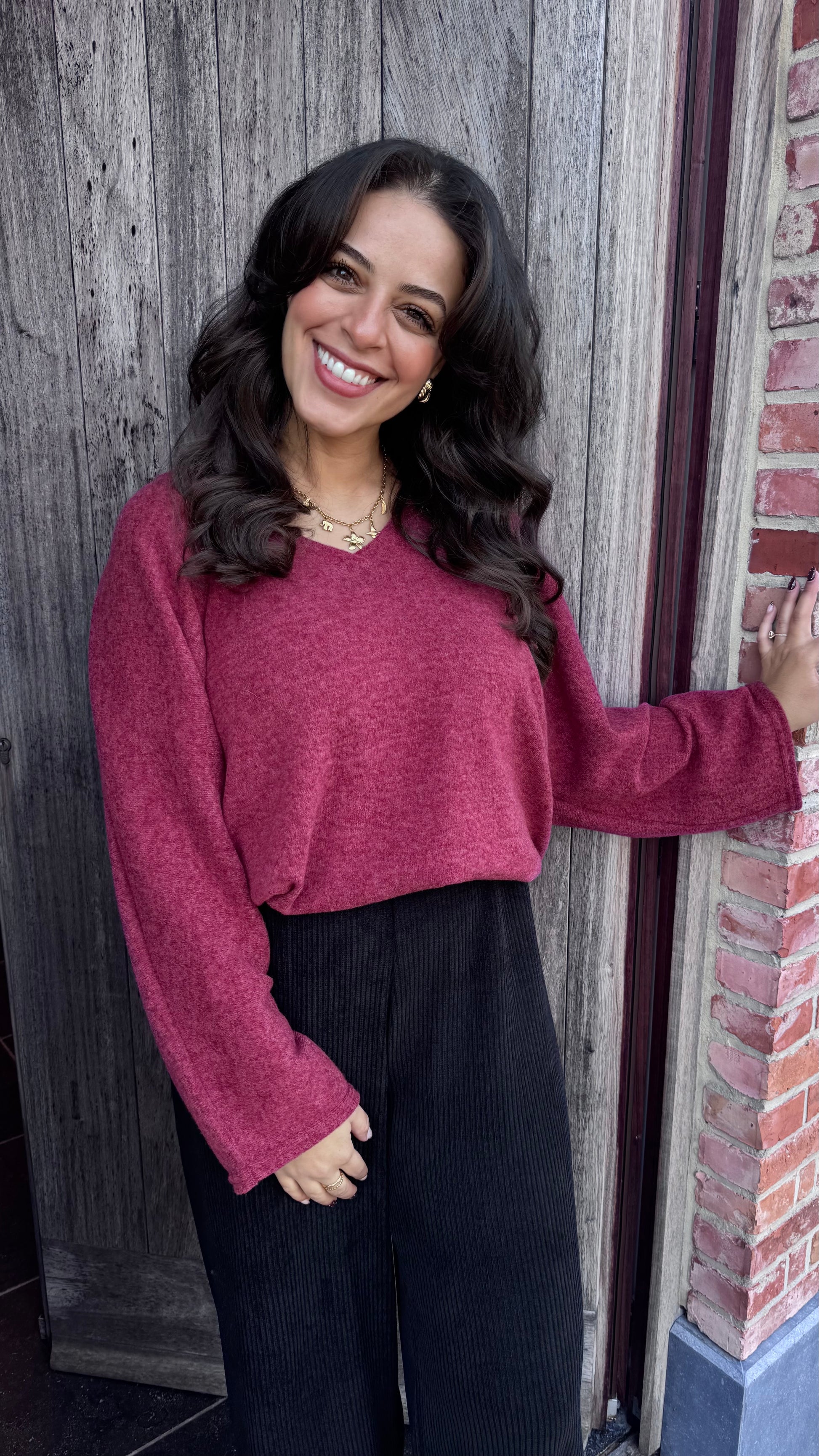 Basic trui V-hals - Bordeaux