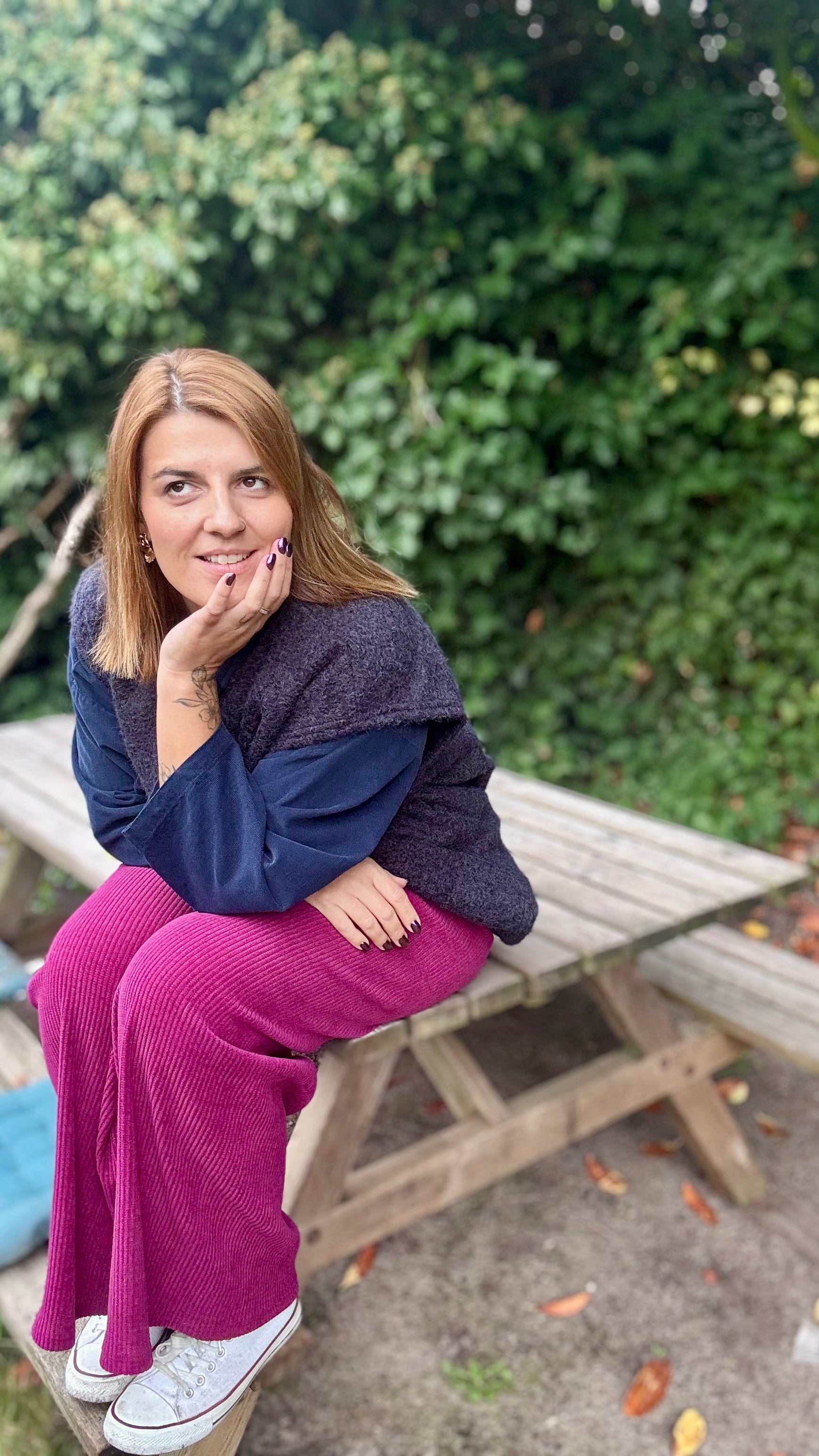 Sharon is 174 cm en heeft doorgaans maat 44.