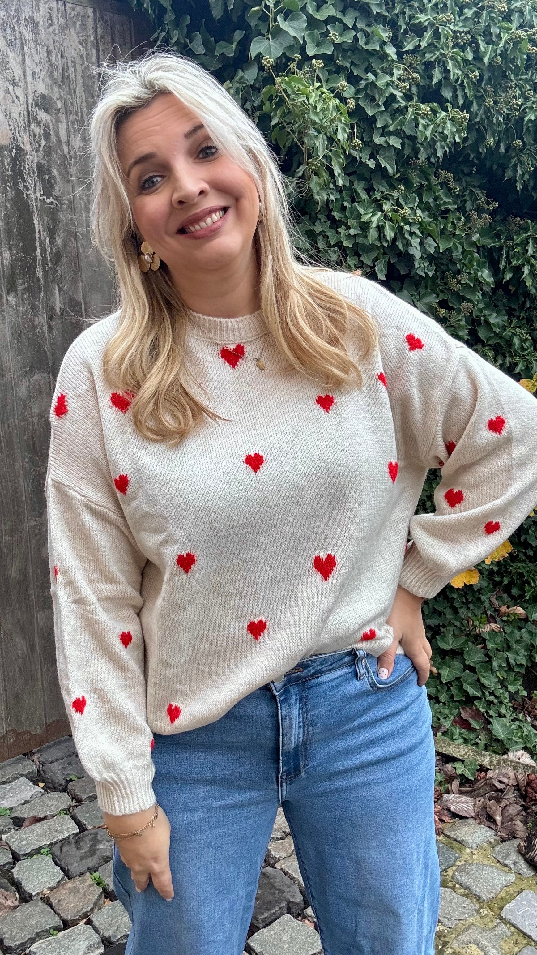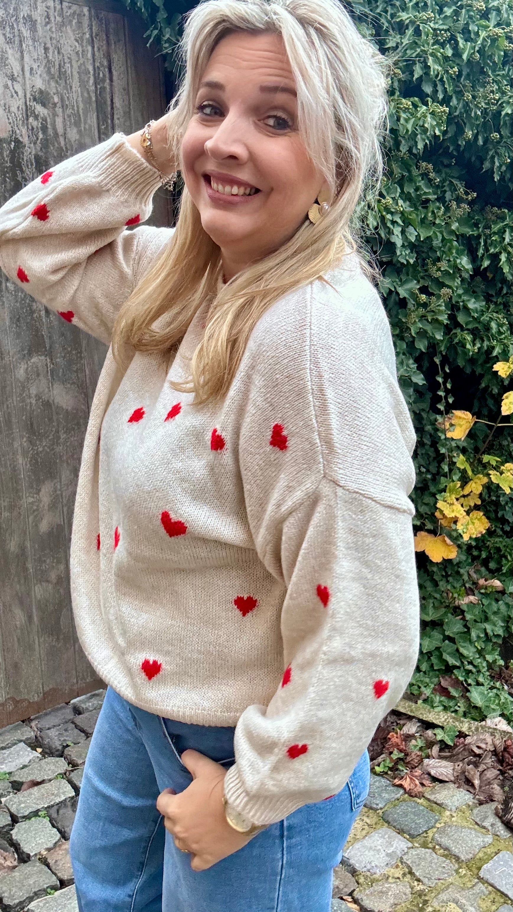 De Cuddle Hearts trui is jouw nieuwe favoriet voor knusse dagen. Deze gezellige oversized trui, versierd met lieve hartjes, combineert comfort en stijl moeiteloos.
