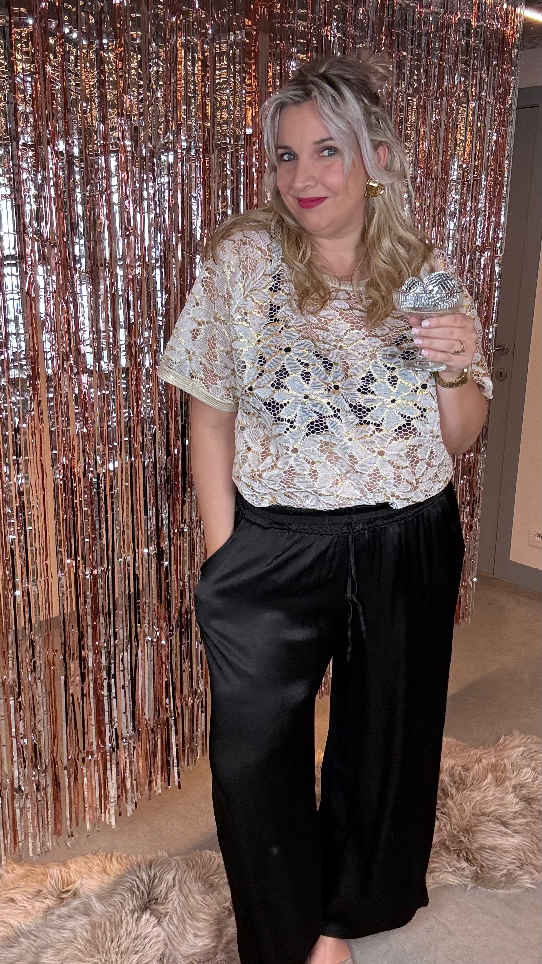 De Curvy Chic Lace Blouse is dé perfecte mix van elegantie en glamour, speciaal ontworpen voor curvy silhouetten. Het delicate kant en subtiele gouden details geven een feestelijke touch, terwijl de ruime snit en flatterende pasvorm zorgen voor comfort én stijl. Ideaal voor feestjes, diners of elke gelegenheid waarbij je wilt stralen.