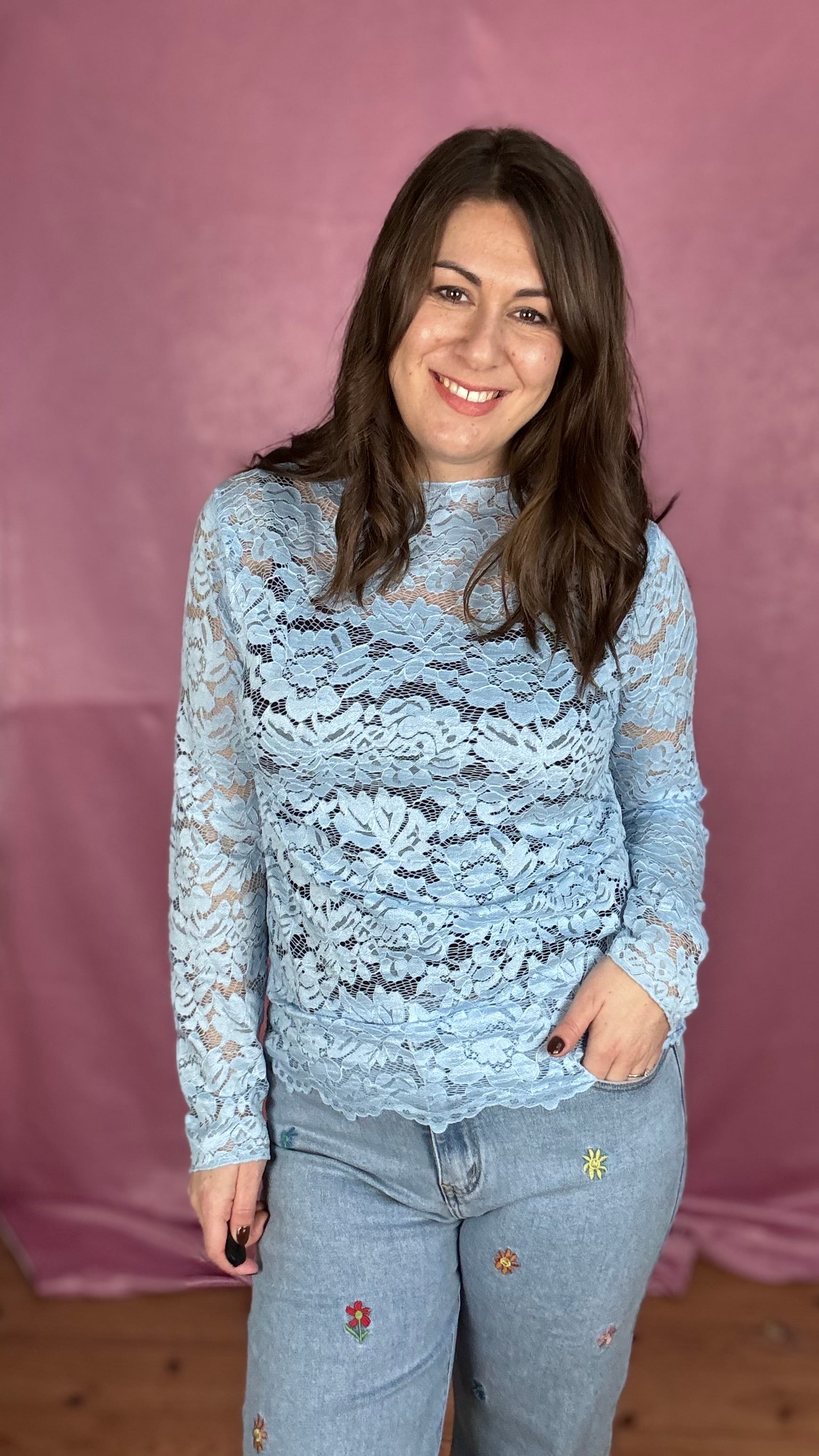 De Fleur Lace Blouse is een elegante kanten blouse met een verfijnd bloemenpatroon. De transparante stof, lange mouwen en ronde hals zorgen voor een vrouwelijke en stijlvolle uitstraling.