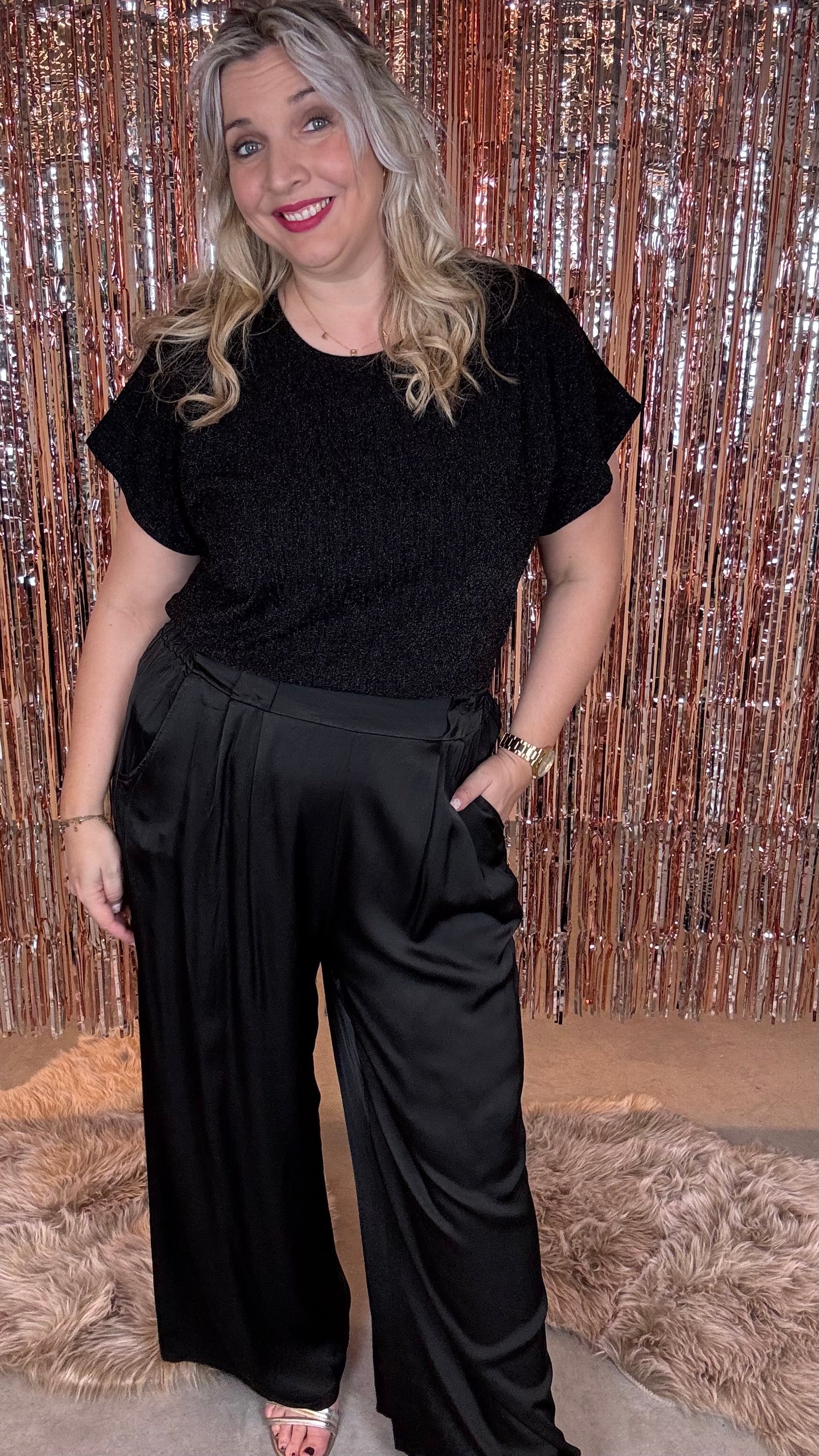 Deze vrouwelijke broek heeft een elastische taille, een wide & fluid cut en vooraan mooie plooien die je look meteen die extra touch geven. De zijzakken maken het model niet alleen elegant, maar ook superpraktisch.
