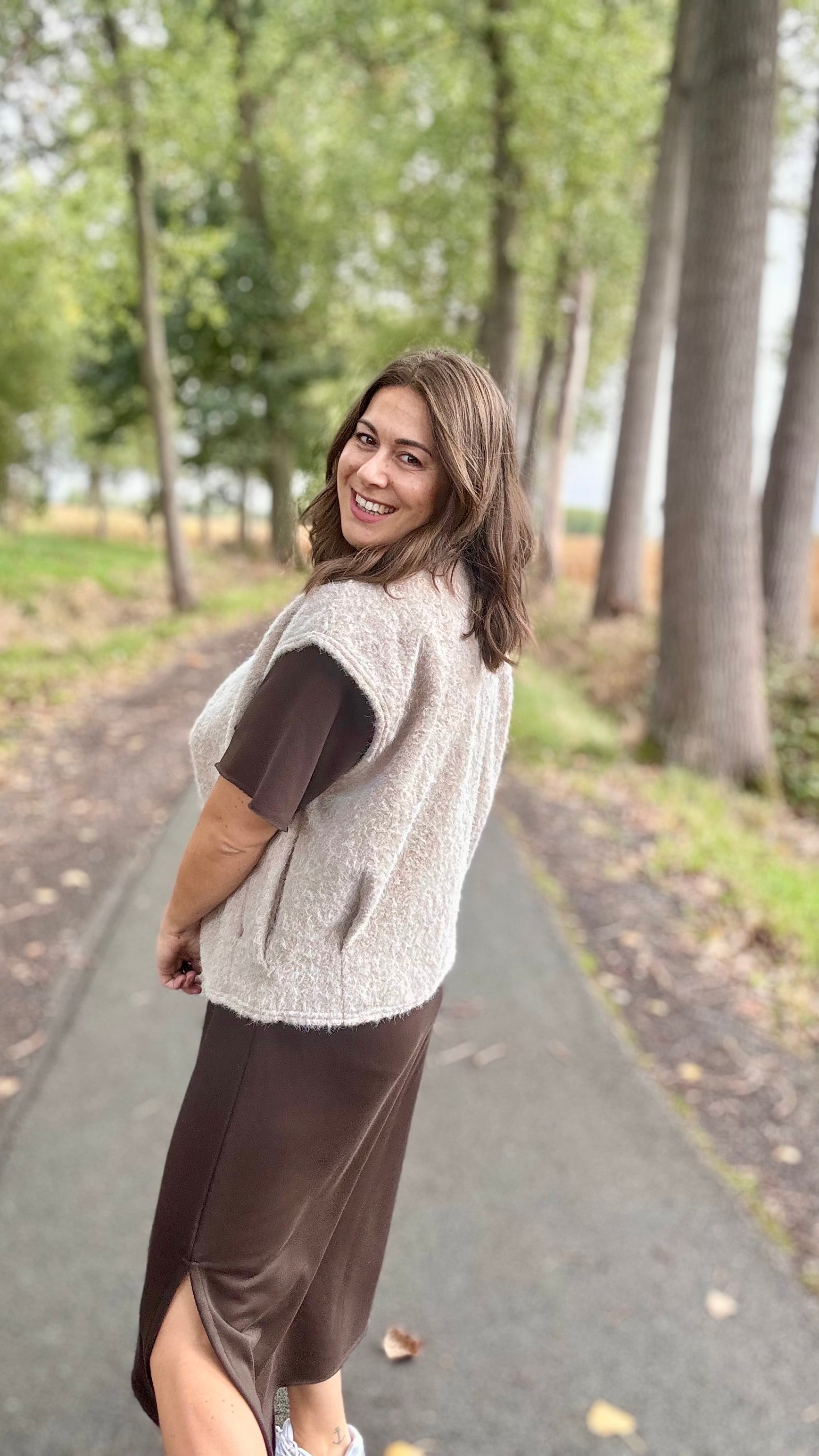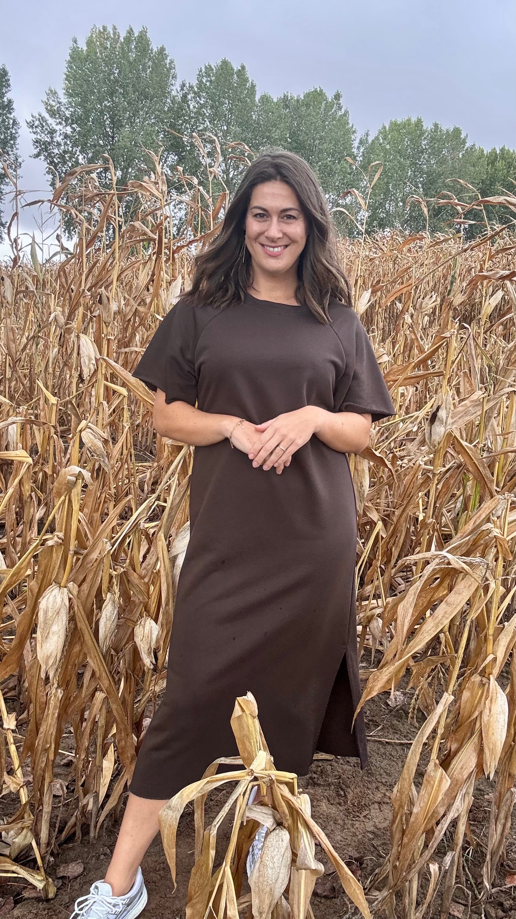 Zachte sweaterjurk in 100% katoen, perfect voor een relaxte dag thuis of gecombineerd met een gilet voor een stijlvolle herfstlook. Comfortabel, vrouwelijk en veelzijdig.
