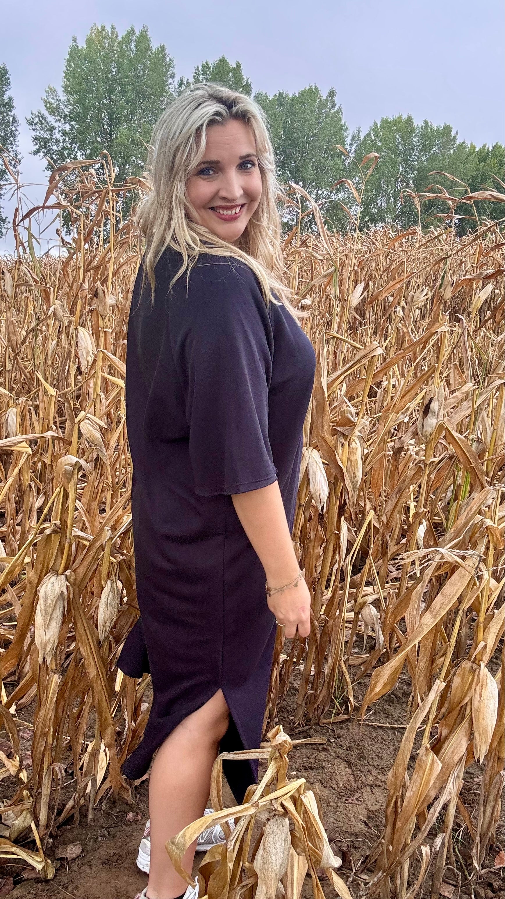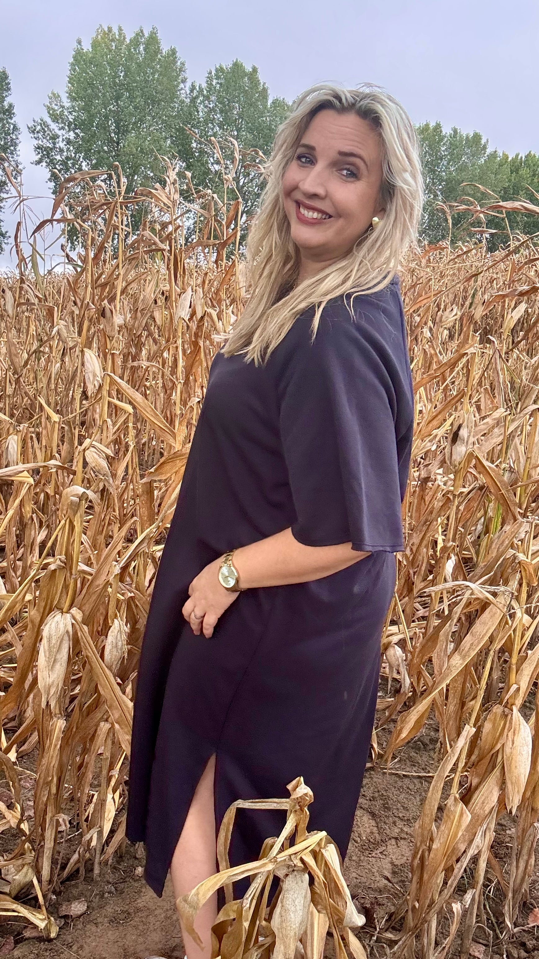 - Sharon (blond haar) is 174cm groot en heeft doorgaans maat 44