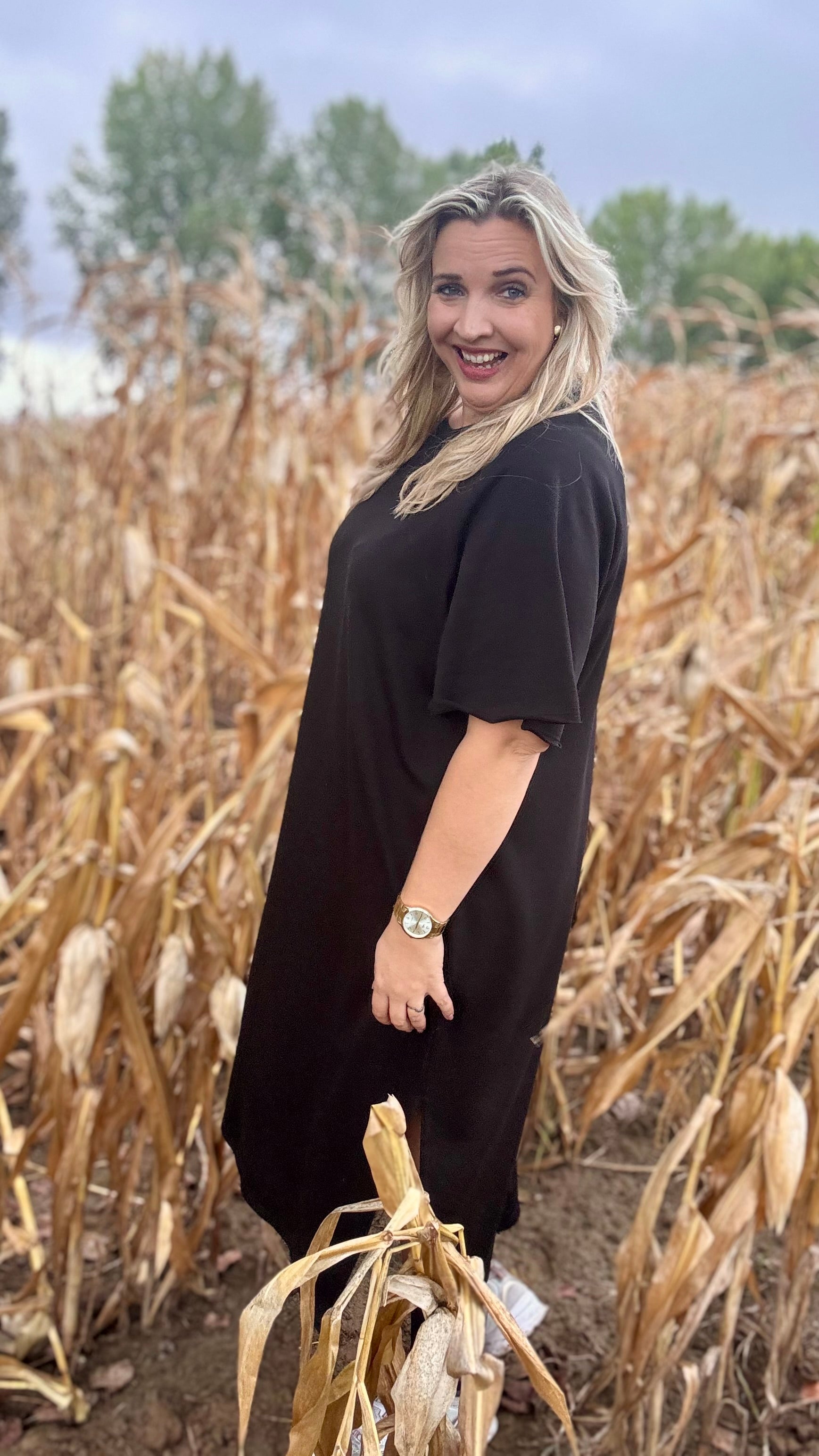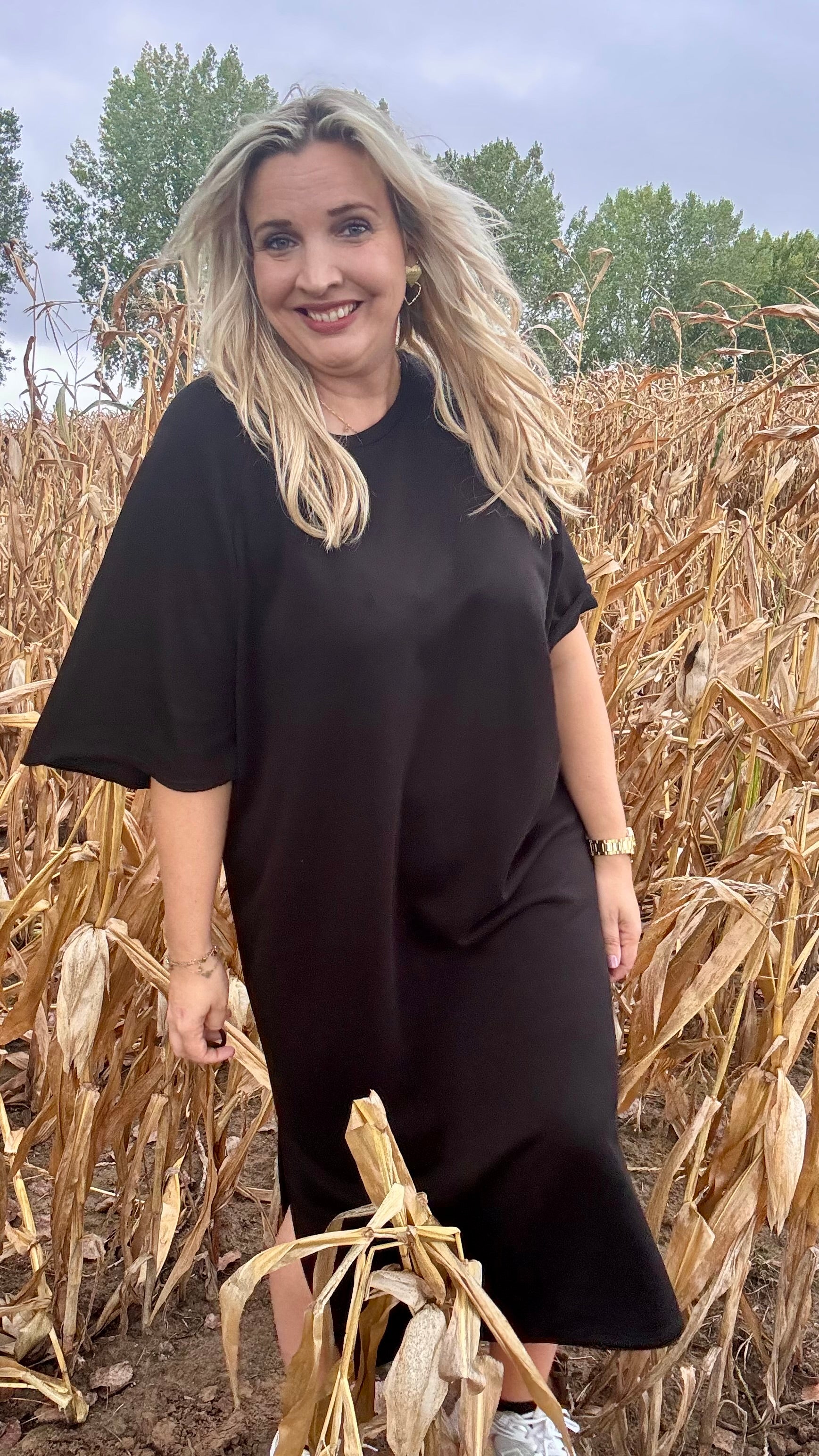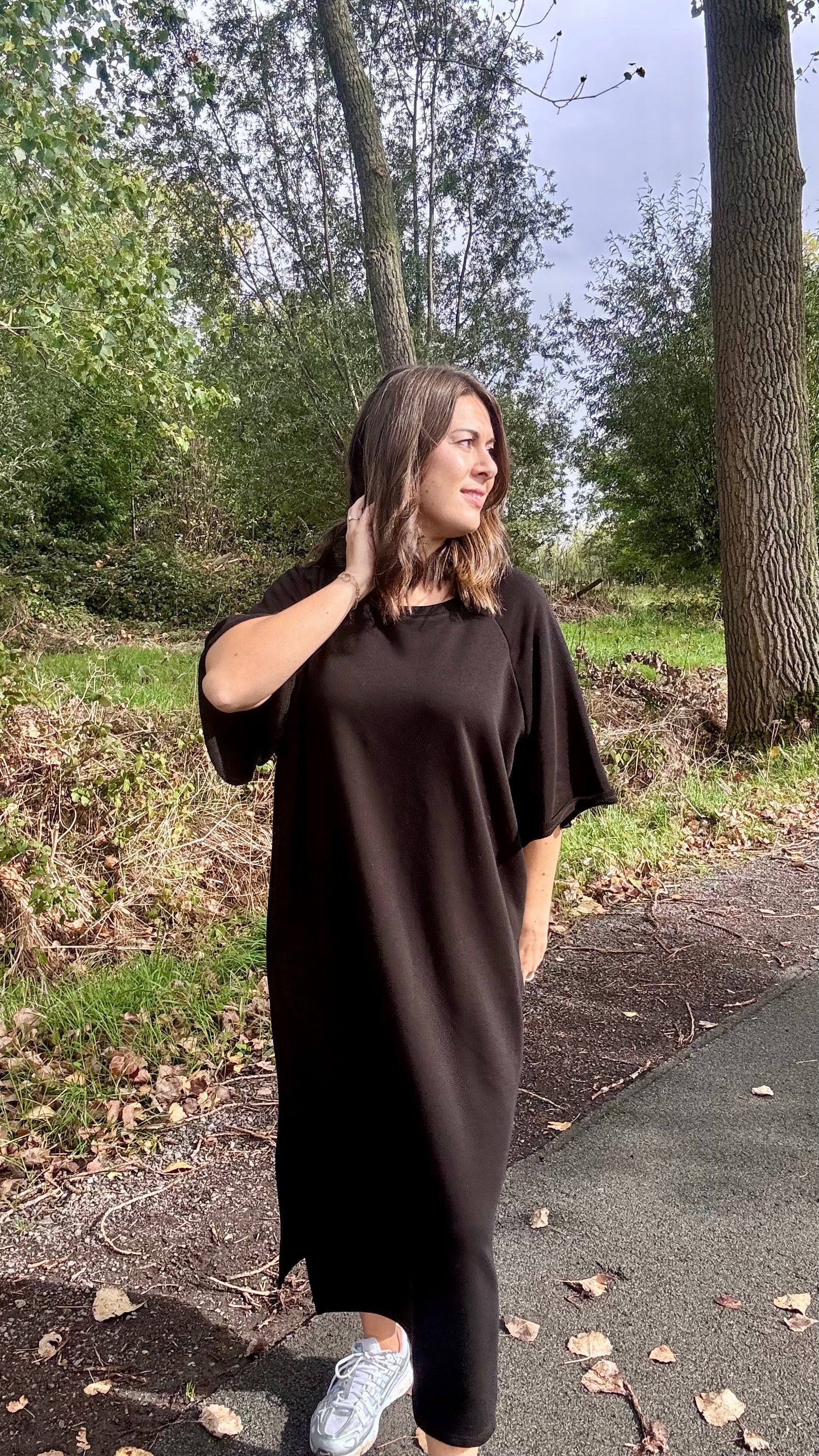 Zachte sweaterjurk in 100% katoen, perfect voor een relaxte dag thuis of gecombineerd met een gilet voor een stijlvolle herfstlook. Comfortabel, vrouwelijk en veelzijdig.