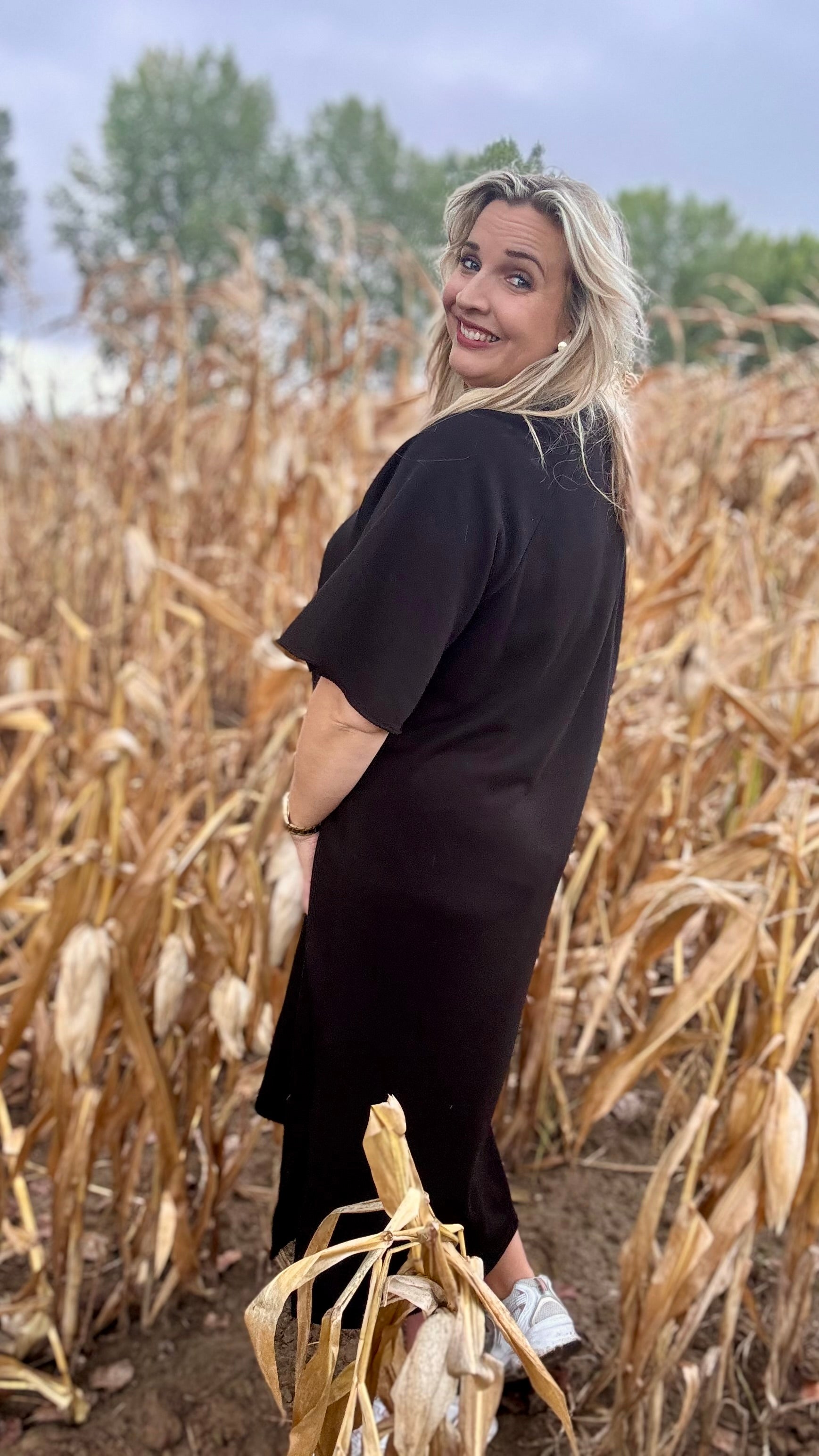 - Sharon (blond haar) is 174cm groot en heeft doorgaans maat 44