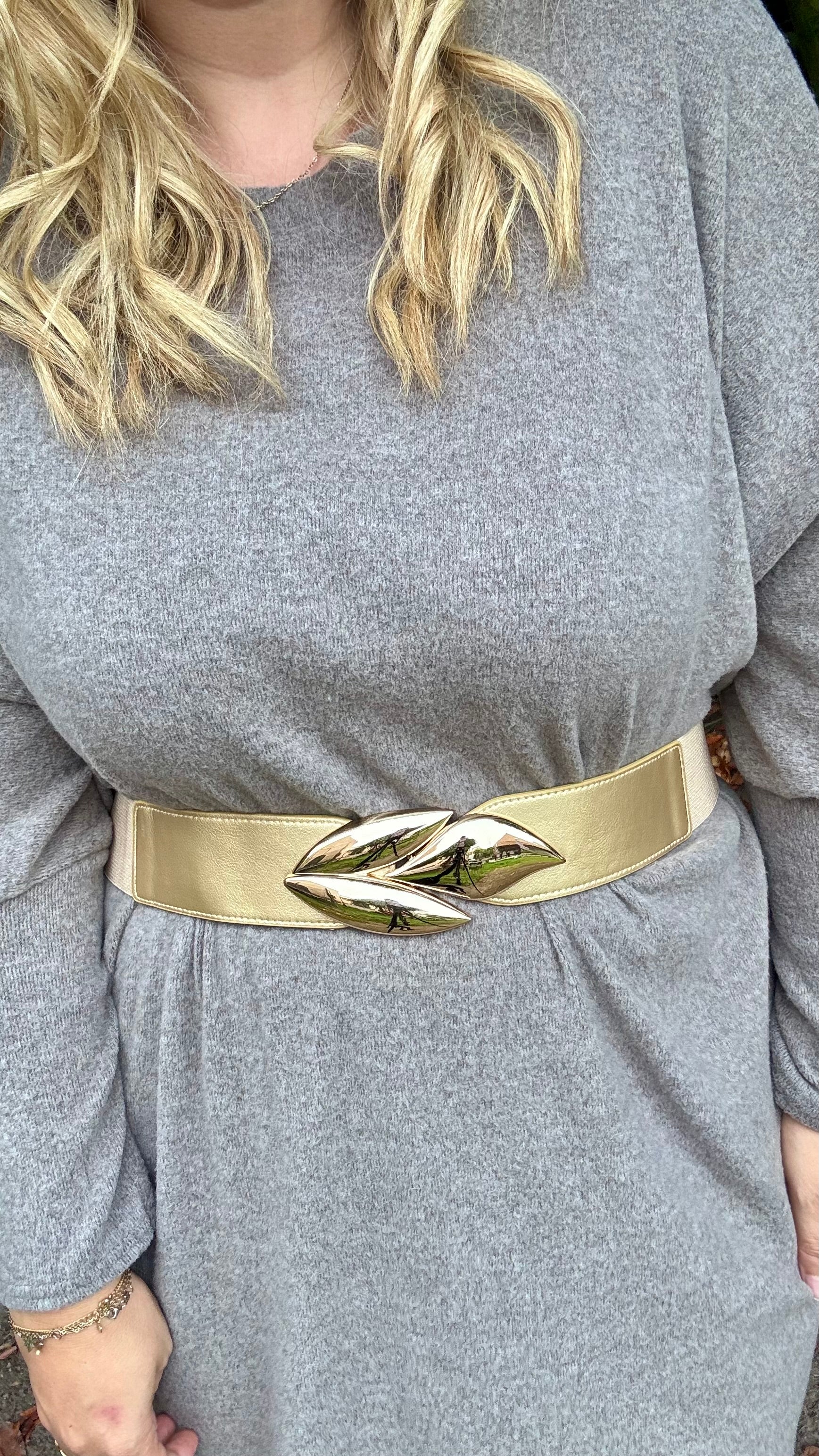 Verstelbare faux-lederen riem met een chique gouden gesp. De brede elastische band zorgt voor een perfecte pasvorm, terwijl het moderne ontwerp elke outfit elegant afwerkt. Ideaal om zowel casual als formele looks een verfijnde touch te geven.