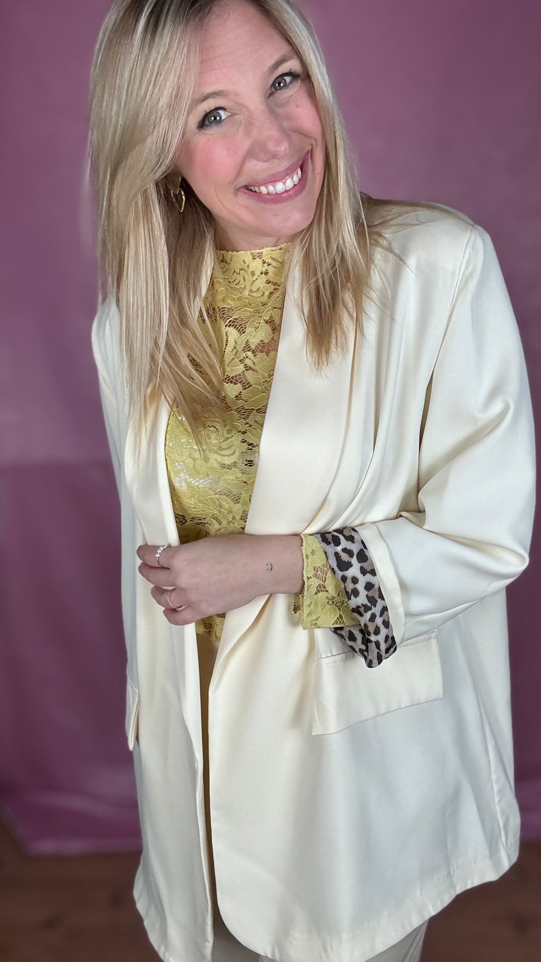 Leopard Touch Blazer! Deze oversized blazer heeft een heerlijke, ruime fitting die je de perfecte balans van comfort en stijl biedt. Het subtiele leoparddetail aan het uiteinde van de mouw is een gedurfde en elegante twist, die je kunt verstoppen door de mouw niet op te rollen. Dit maakt de blazer veelzijdig en geschikt voor elke gelegenheid.