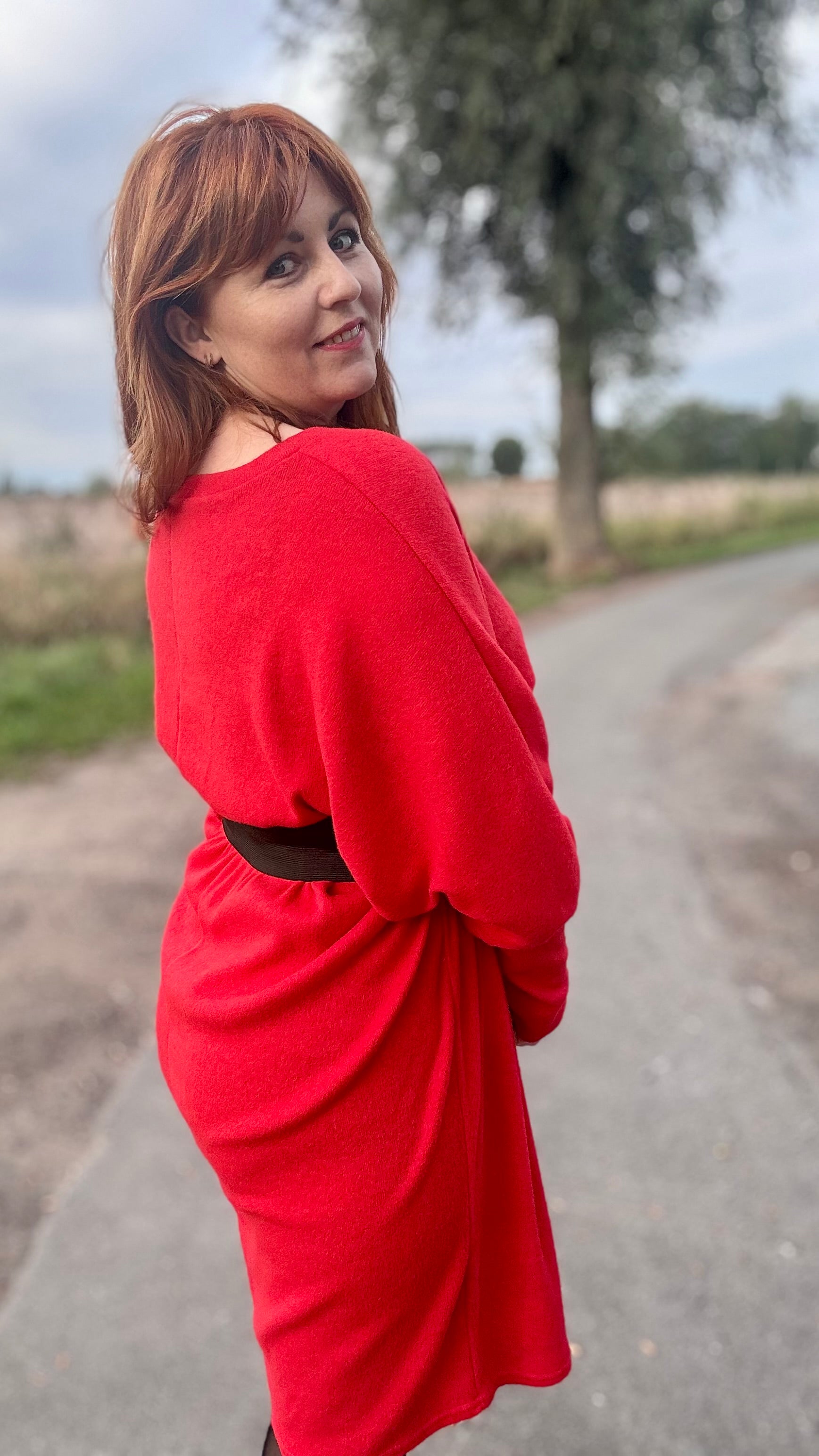 De Lounge Luxe jurk is een zachte sweaterjurk die heerlijk los valt. Draag 'm met of zonder de elastische riem. ( riem incl )