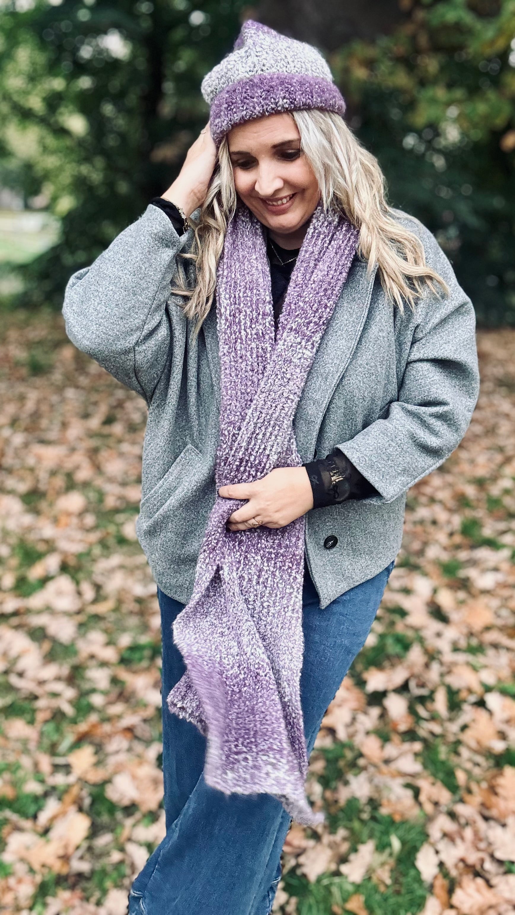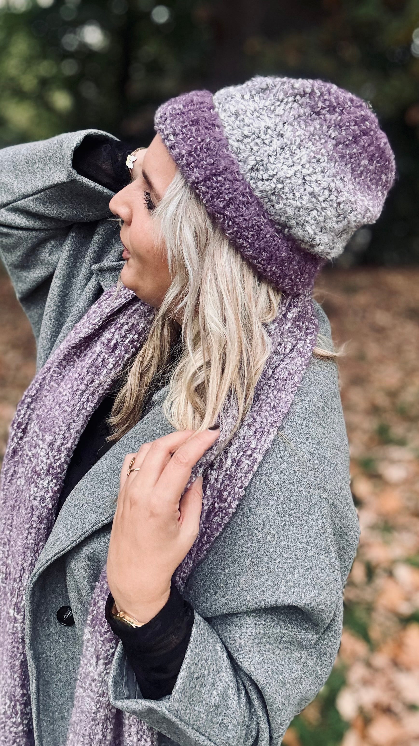 Sjaal & muts in prachtige kleuren die moeiteloos in elkaar blenden.