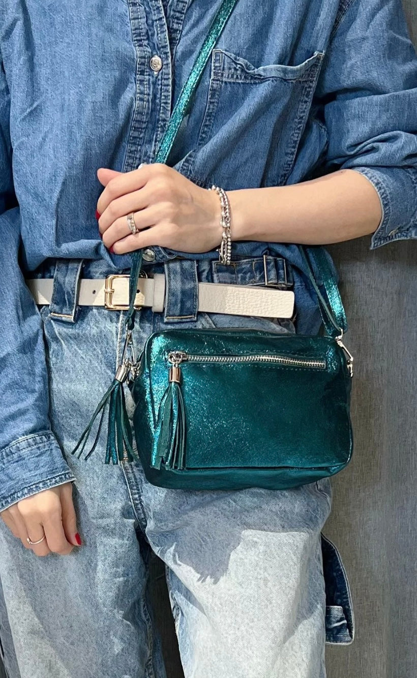 Maak kennis met de Niva Handbag, een compact en stijlvol tasje met een subtiel metallic effect dat elke outfit een frisse touch geeft. Het heeft een praktisch buitenvakje, sluit met een rits en komt met een afneembare schouderriem, zodat je het zowel over de schouder als in de hand kunt dragen. Kleine krasjes in het leer maken elk exemplaar uniek en horen bij de natuurlijke textuur van het materiaal.