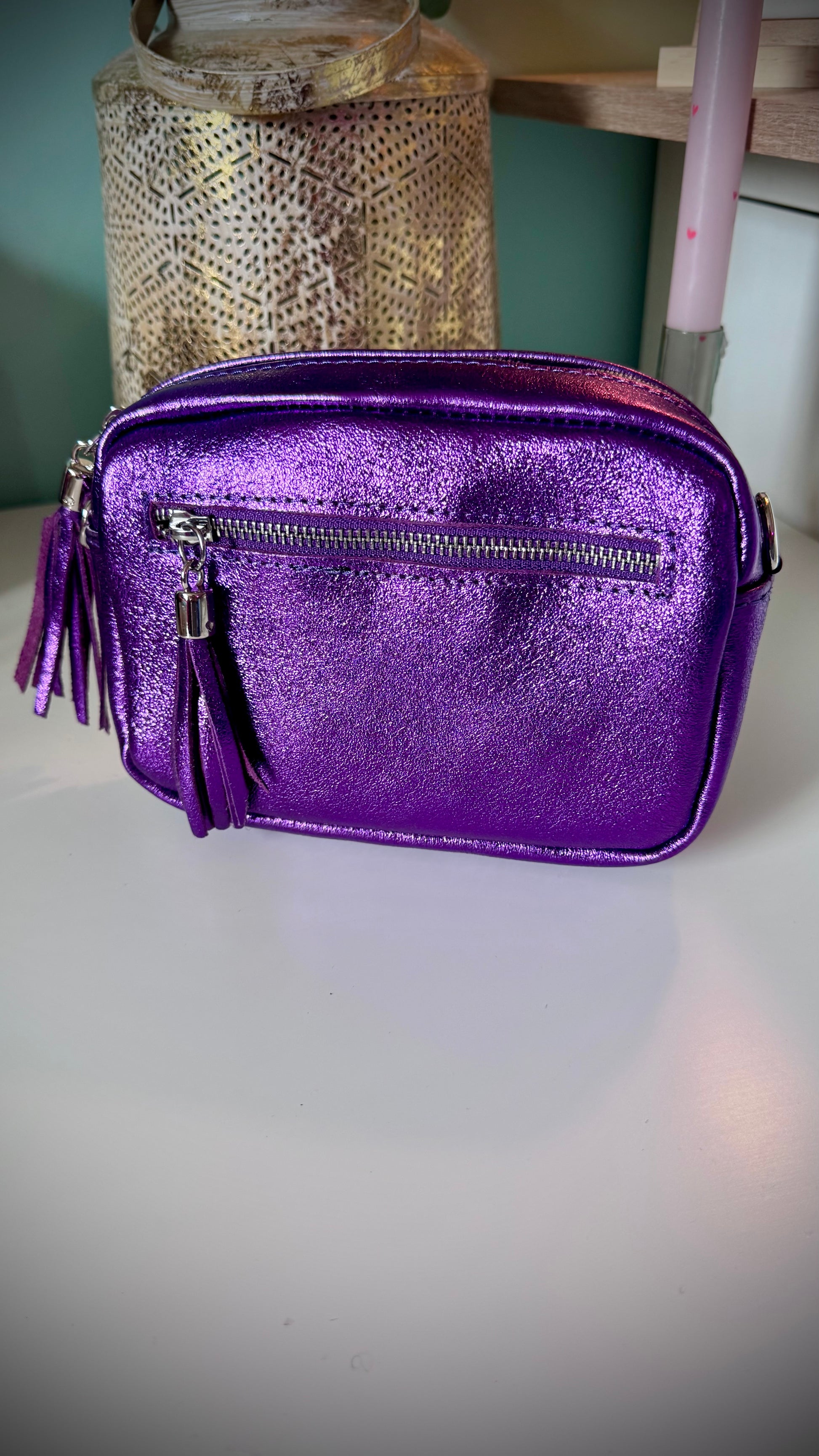 Maak kennis met de Niva Handbag, een compact en stijlvol tasje met een subtiel metallic effect dat elke outfit een frisse touch geeft. Het heeft een praktisch buitenvakje, sluit met een rits en komt met een afneembare schouderriem, zodat je het zowel over de schouder als in de hand kunt dragen. Kleine krasjes in het leer maken elk exemplaar uniek en horen bij de natuurlijke textuur van het materiaal.
