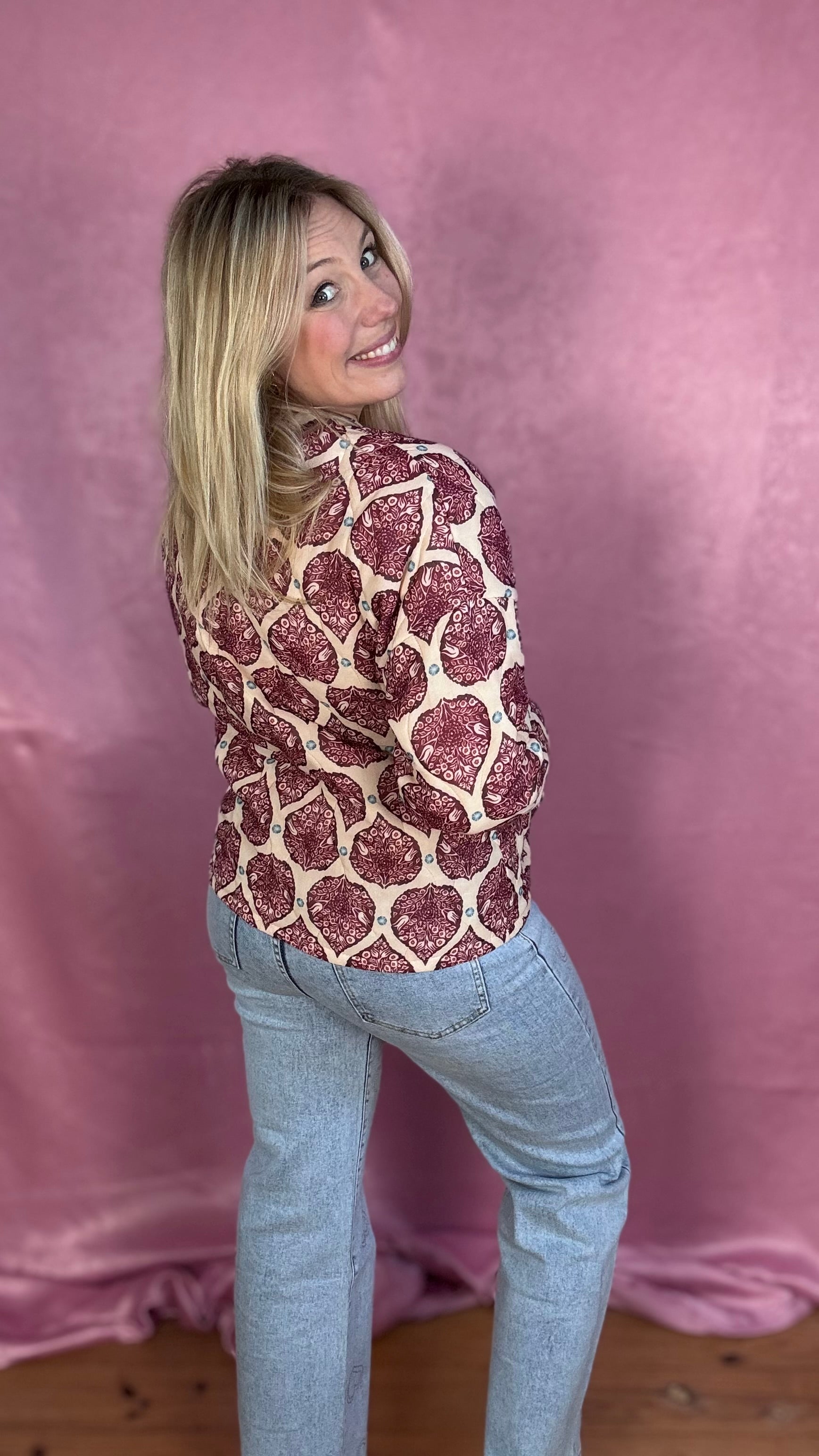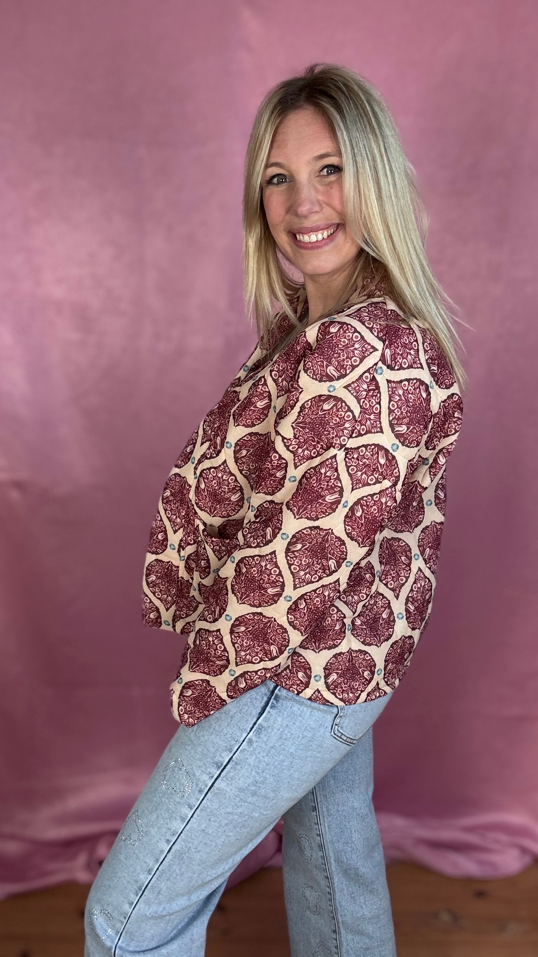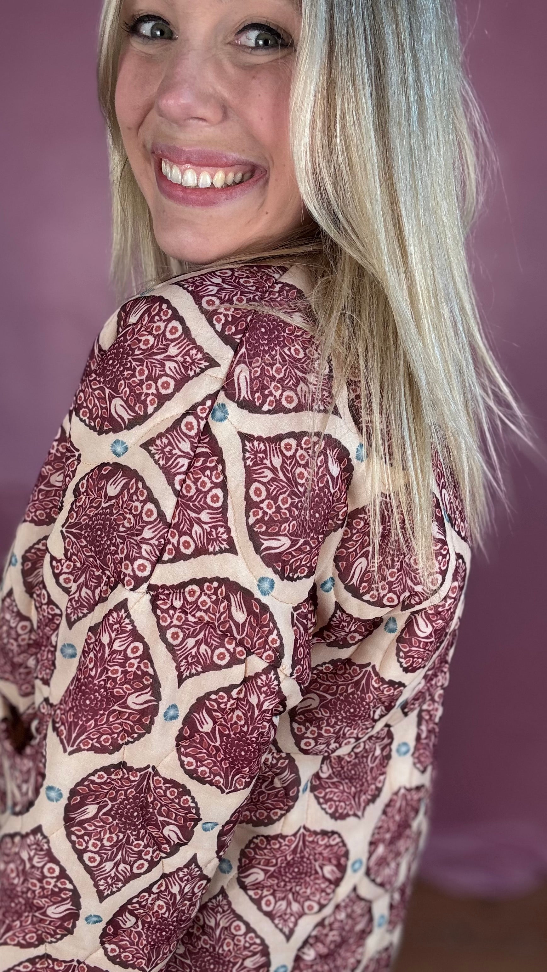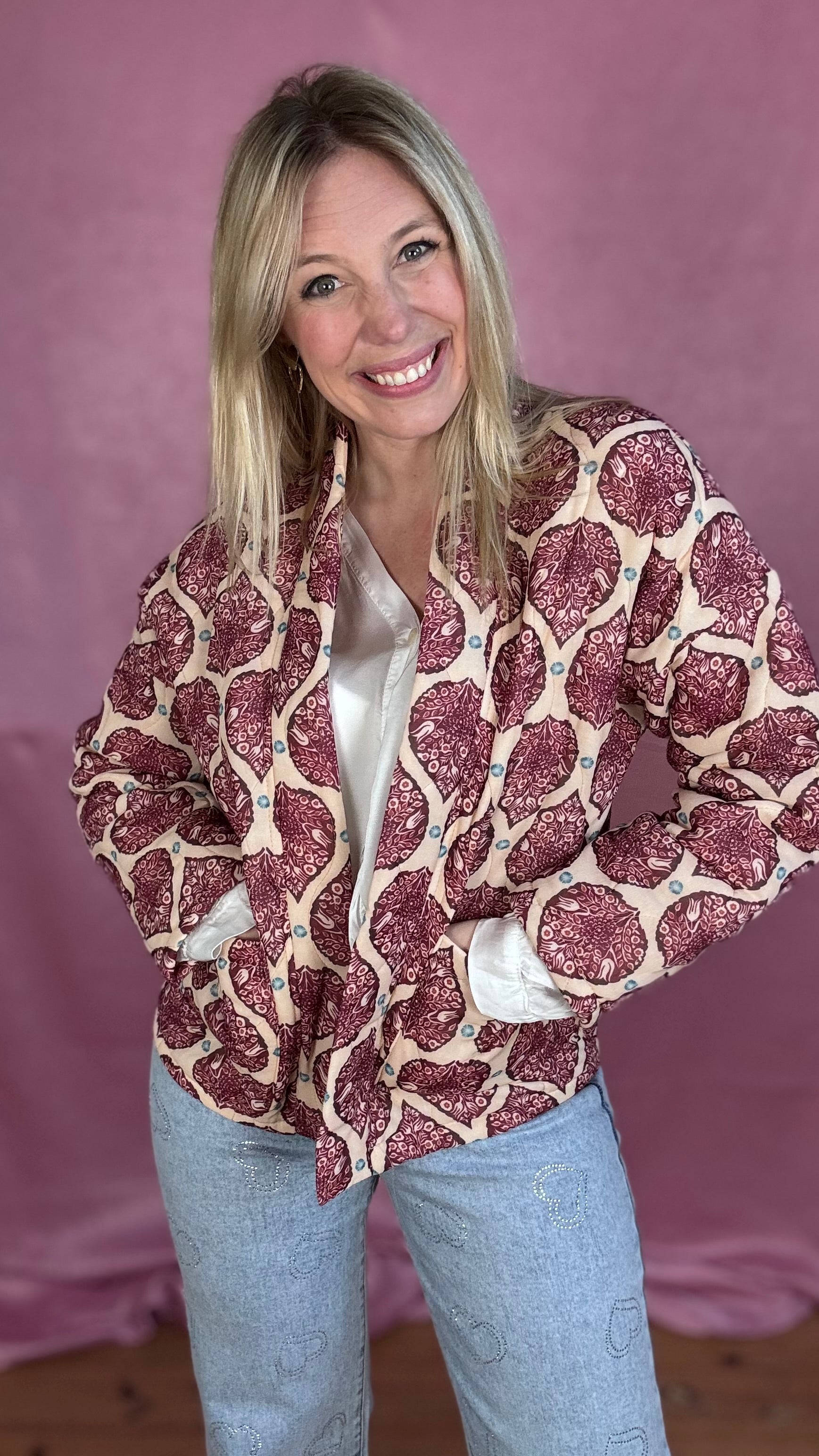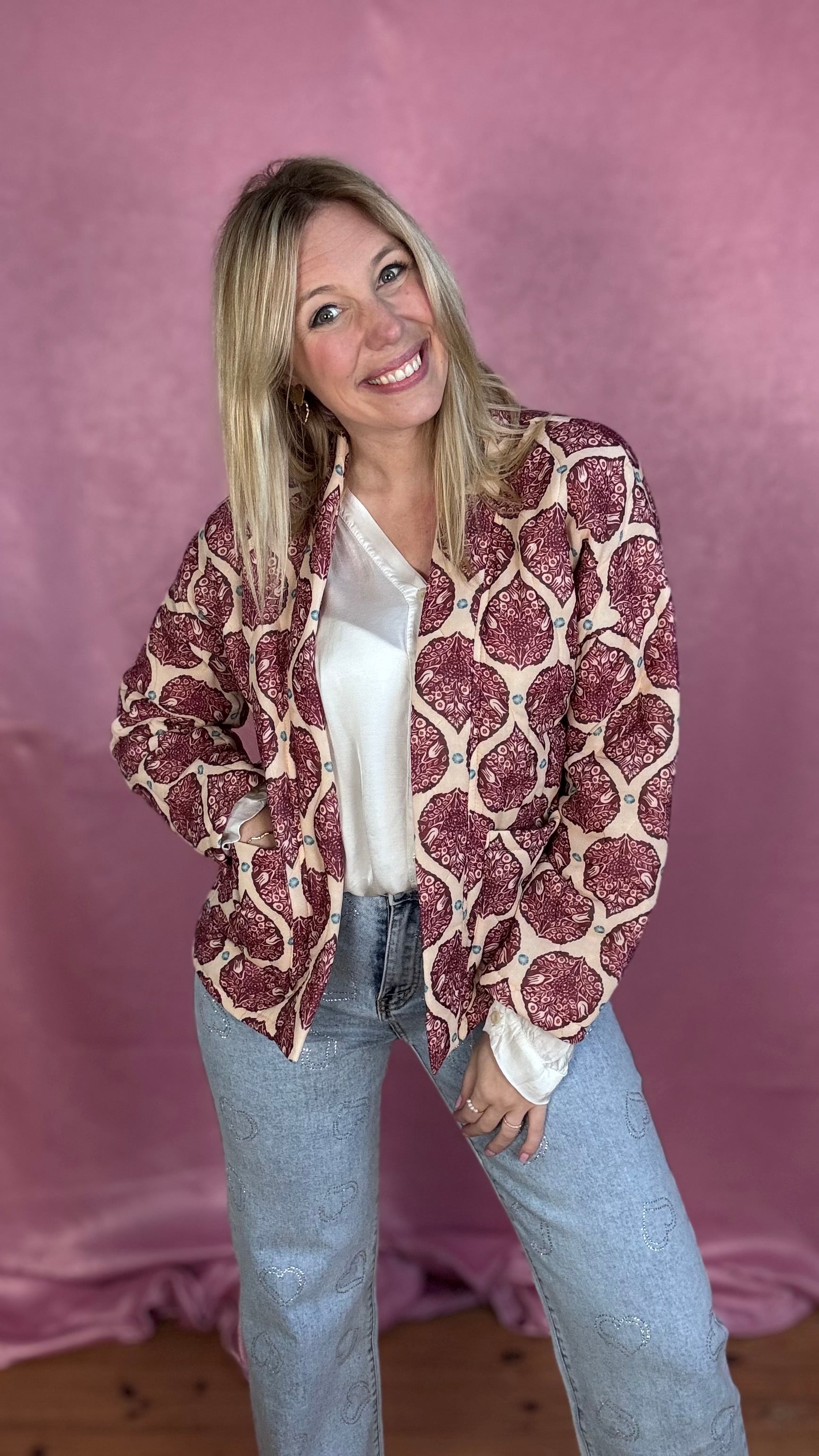 De Nomad Quilted Jacket is een grafische quilted jas met een uitgesproken ethnic chic vibe. De zachte sjaalkraag en het subtiele kleurenspel op beige basis maken dit item perfect om een eenvoudige outfit meteen karakter te geven