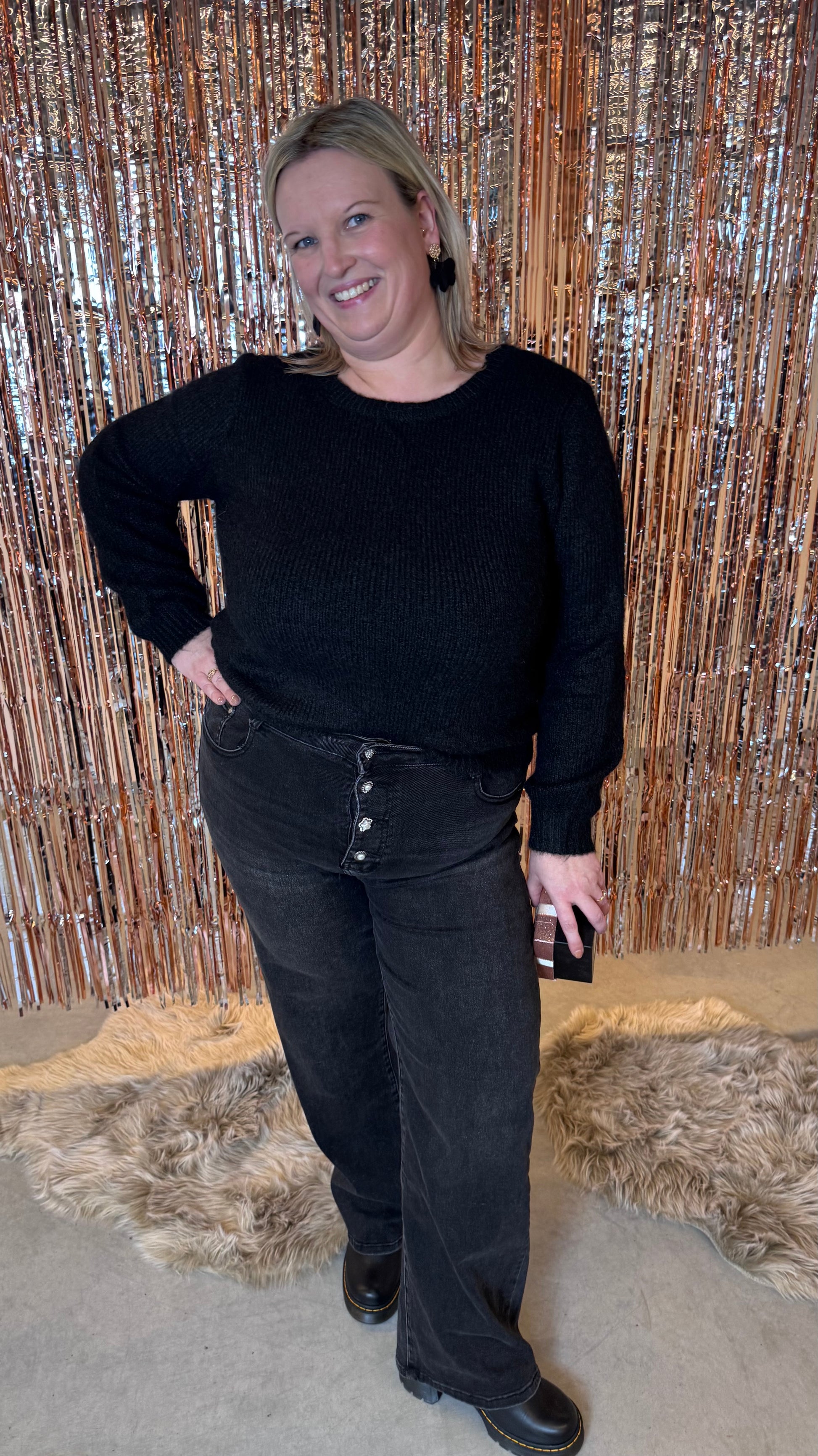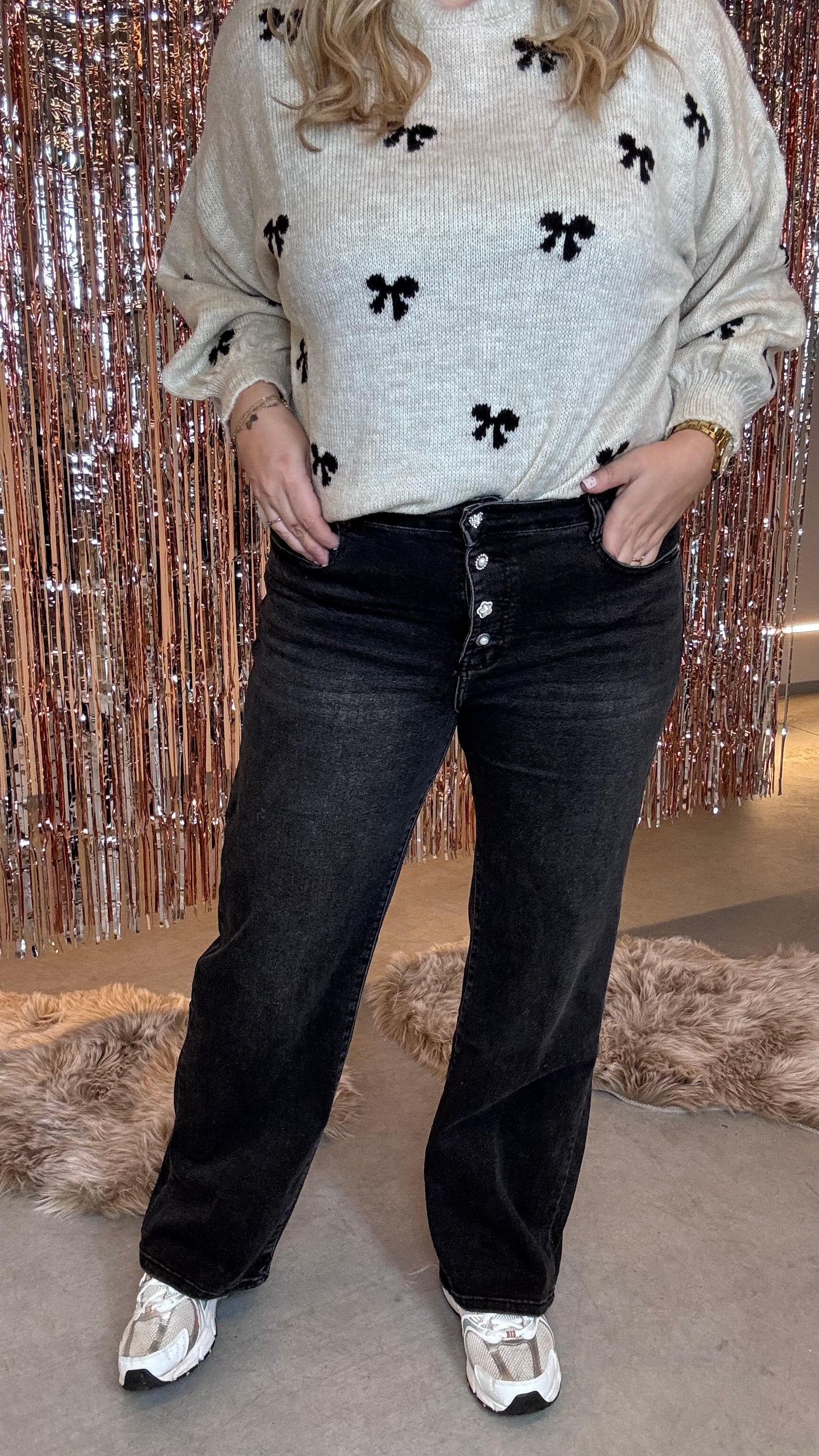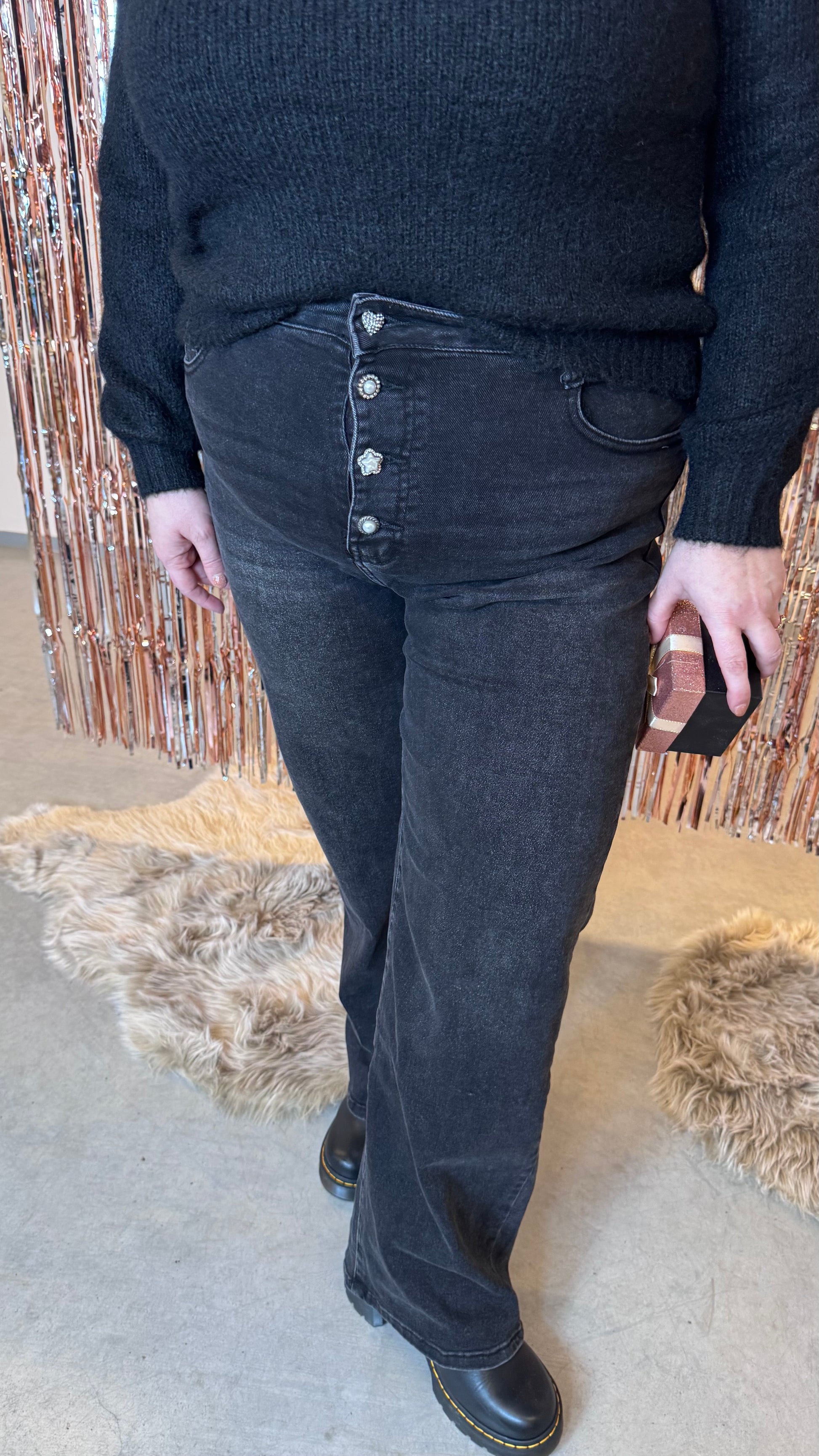 De Pearl Jeans combineert stijl en comfort in één. Deze donkergrijze stretch jeans heeft stijlvolle parelknopen aan de voorkant en subtiele glitters, waardoor hij perfect is voor zowel feestelijke gelegenheden als een casual dagje uit. Dankzij de stretch zit hij supercomfortabel en blijft hij mooi in model, ongeacht hoe je beweegt.