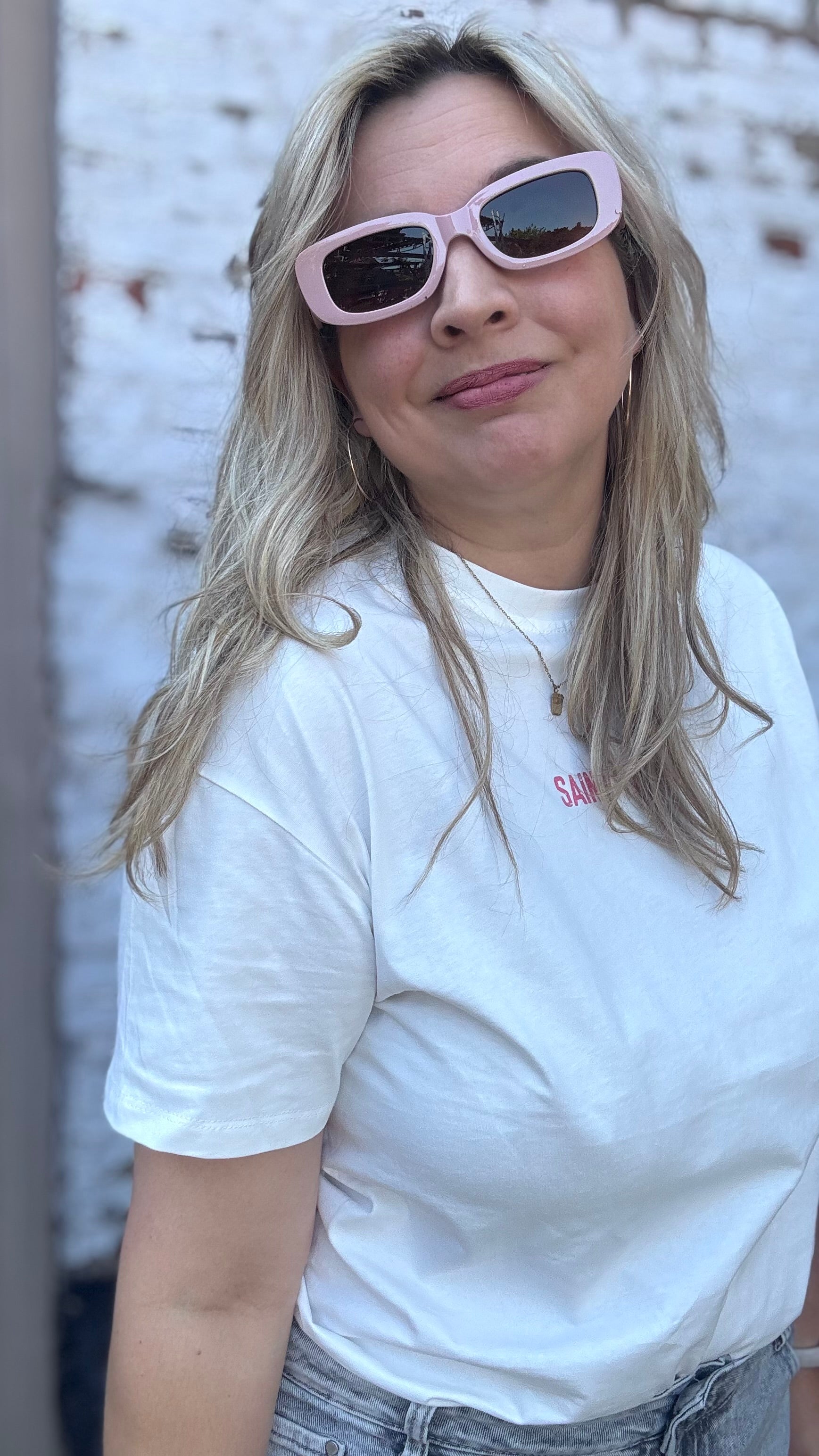 Hoe leuk is deze zonnebril? Een echte must-have als je het aan ons vraagt. De zonnebril is gemaakt van PC.