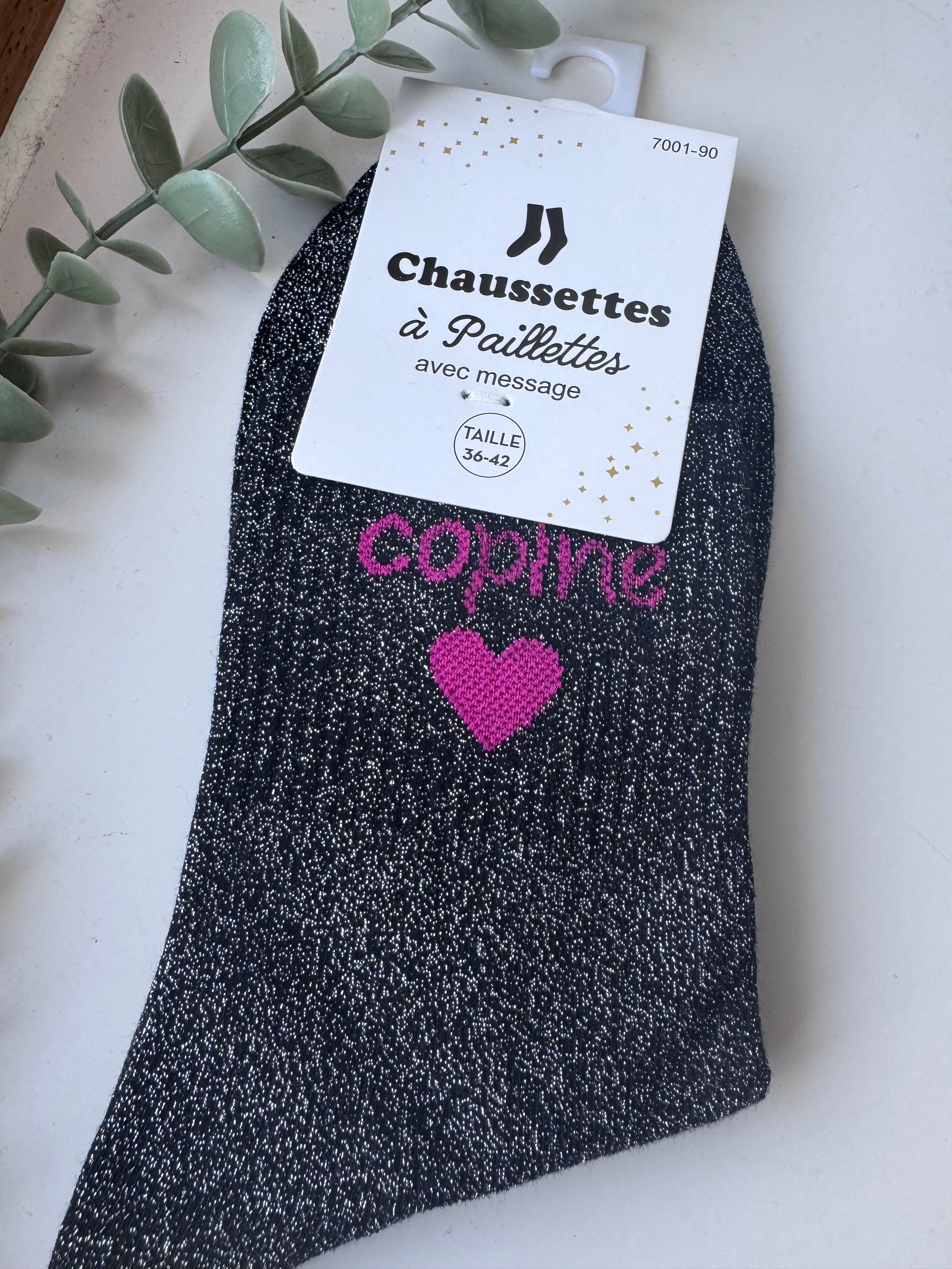- Coole quote sokken met subtiele glitter.