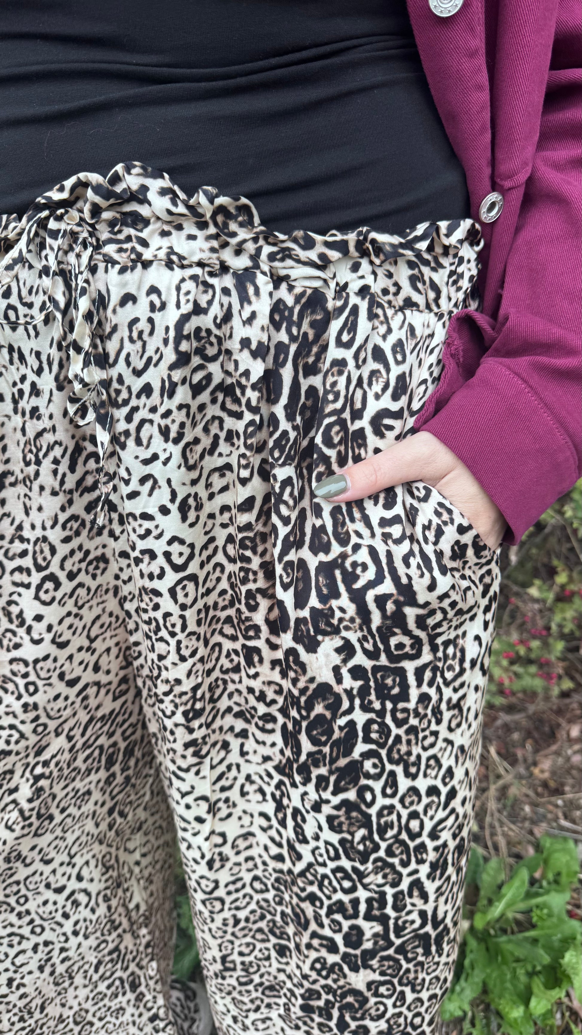 De Saskia broek combineert comfort en stijl. Hij valt lekker ruim, heeft een elastische taille en natuurlijk… zakken (altijd een pluspunt 😉).