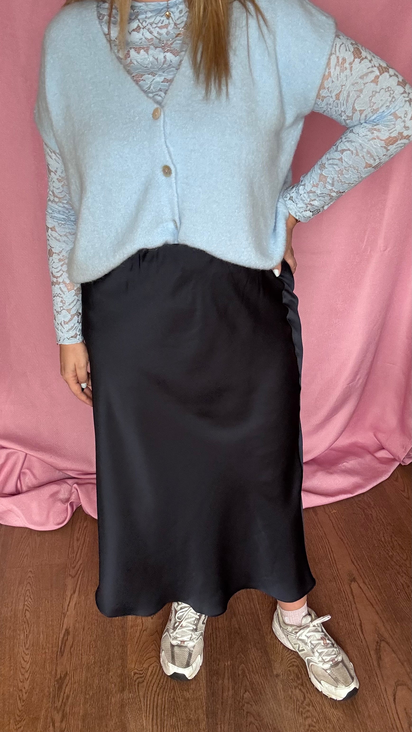 De Silky Muse Skirt is een elegante midi rok met een luxe zijde-look. Dankzij de elastische taille zit ze heerlijk comfortabel en valt ze soepel rond het lichaam, perfect voor een vrouwelijke, moeiteloze look.