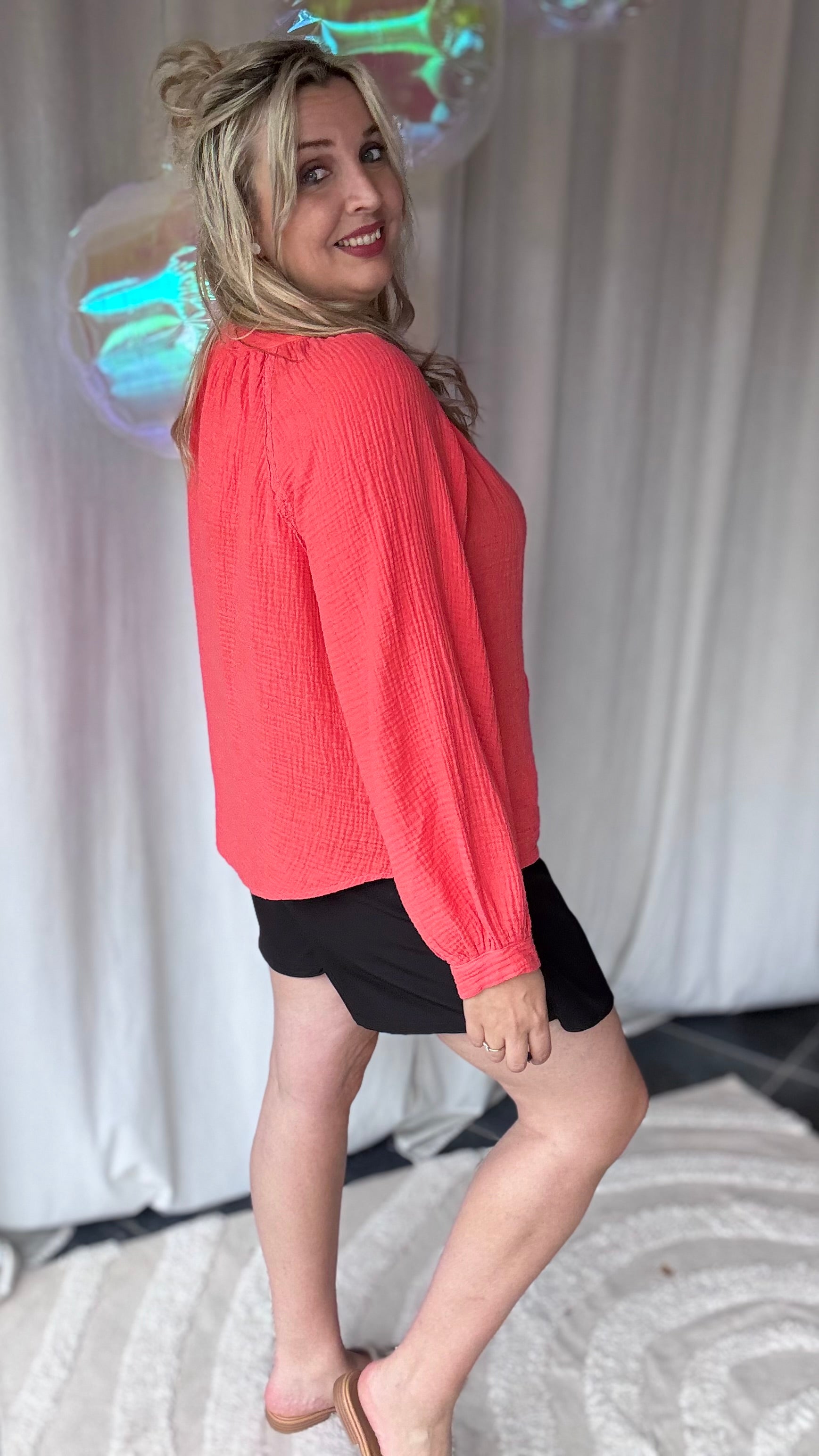 De Sofia Blouse is een tijdloze basic met een romantische twist. Gemaakt van luchtige tetra stof in 100% katoen, met fijne knoopjes en lange mouwen. Draag haar casual op je favoriete jeans of geknoopt over een jurkje – deze blouse geeft elke look een vrouwelijke flair.