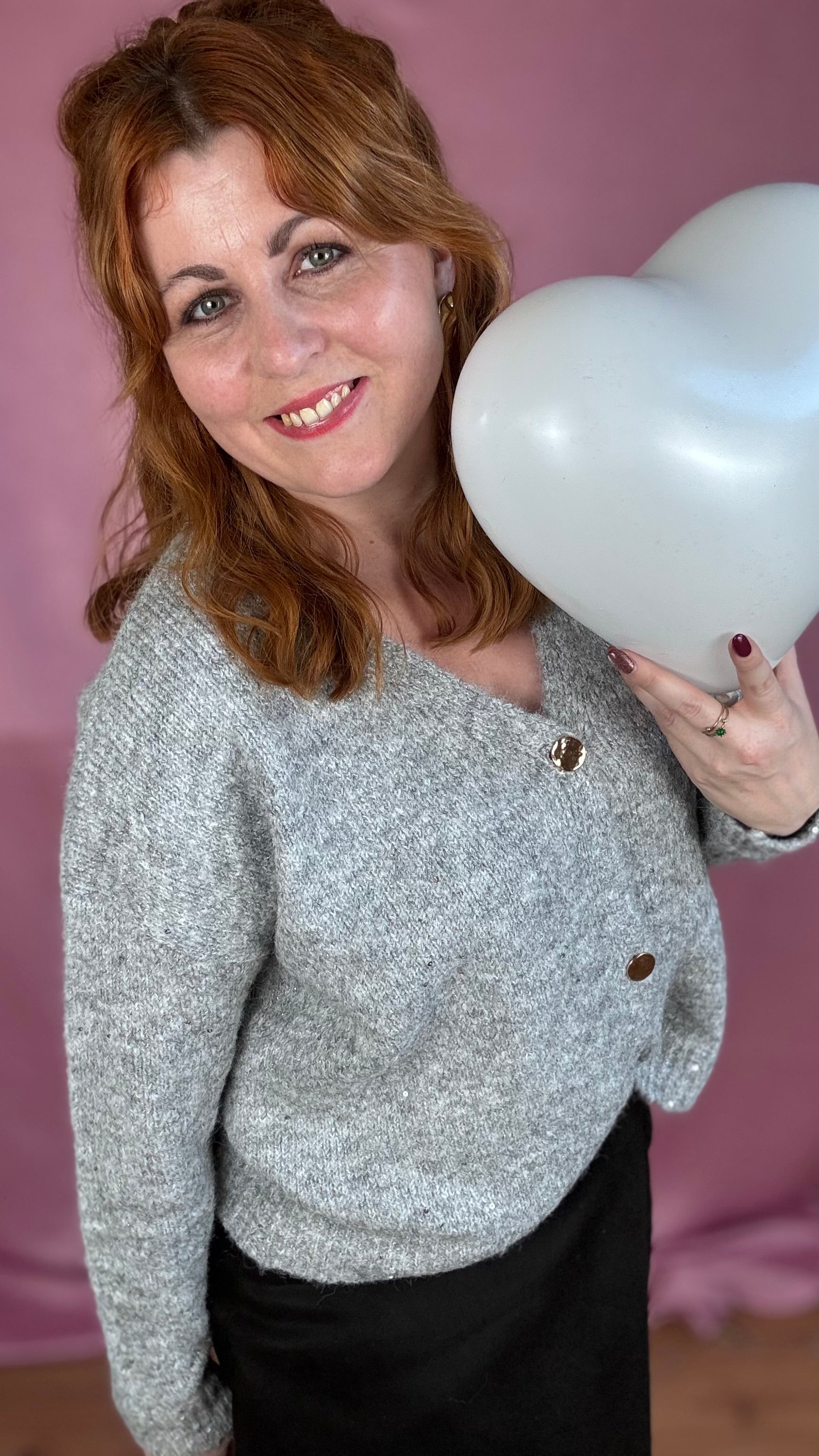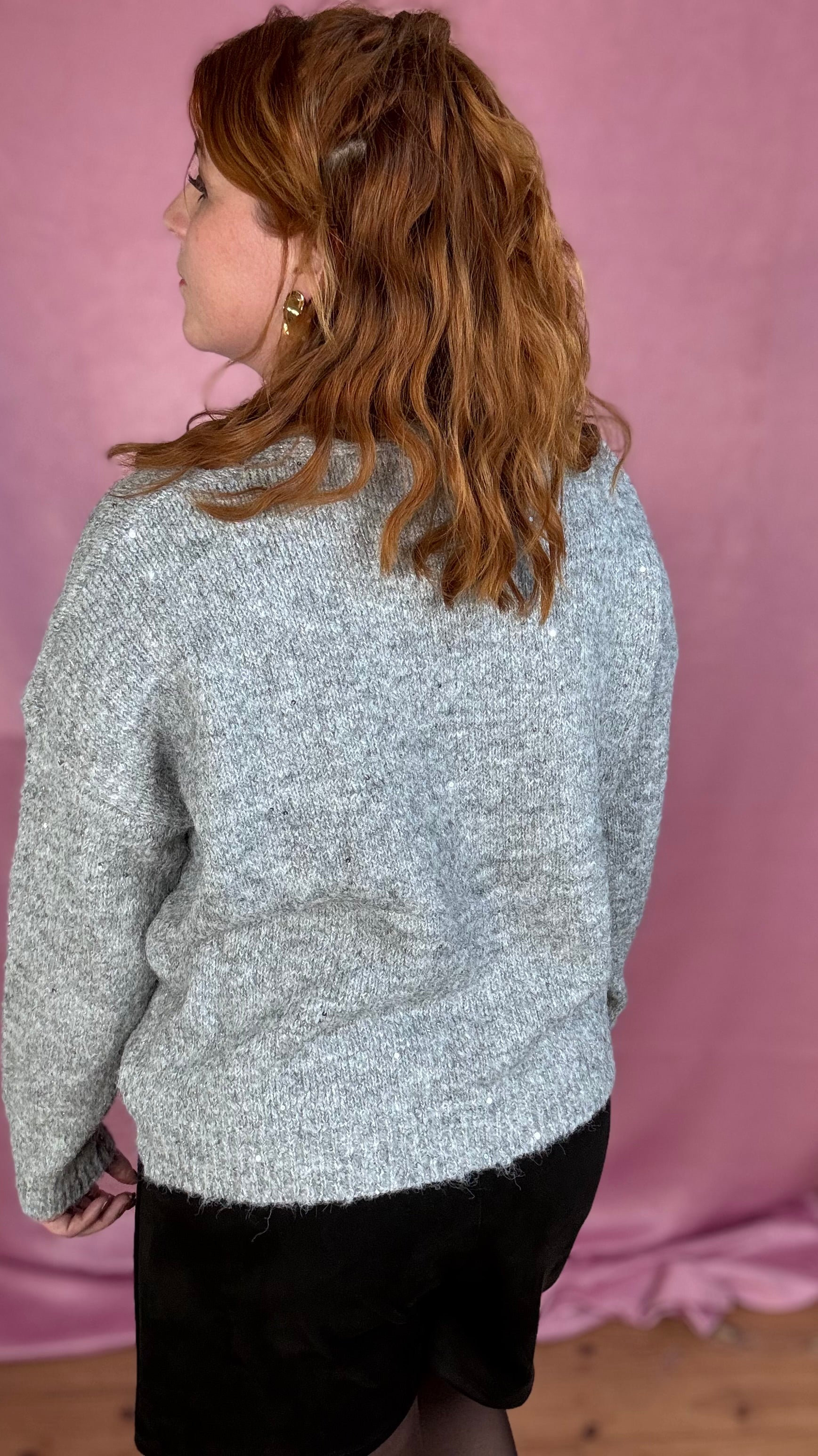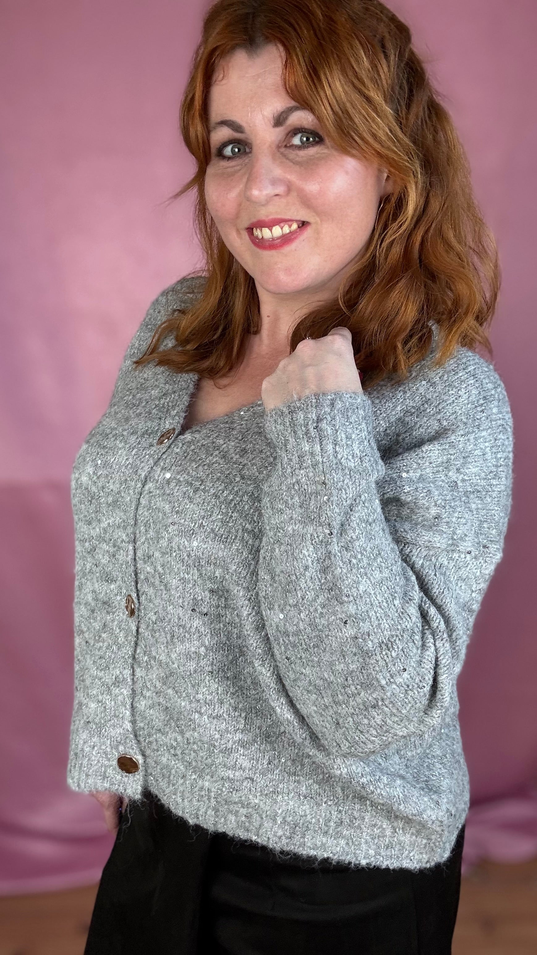 Deze soft knit cardigan met V-hals is comfortabel en vrouwelijk. De losse fit en contrasterende knopen zorgen voor een frisse, casual look, met een zachte touch van subtiele pailletten.