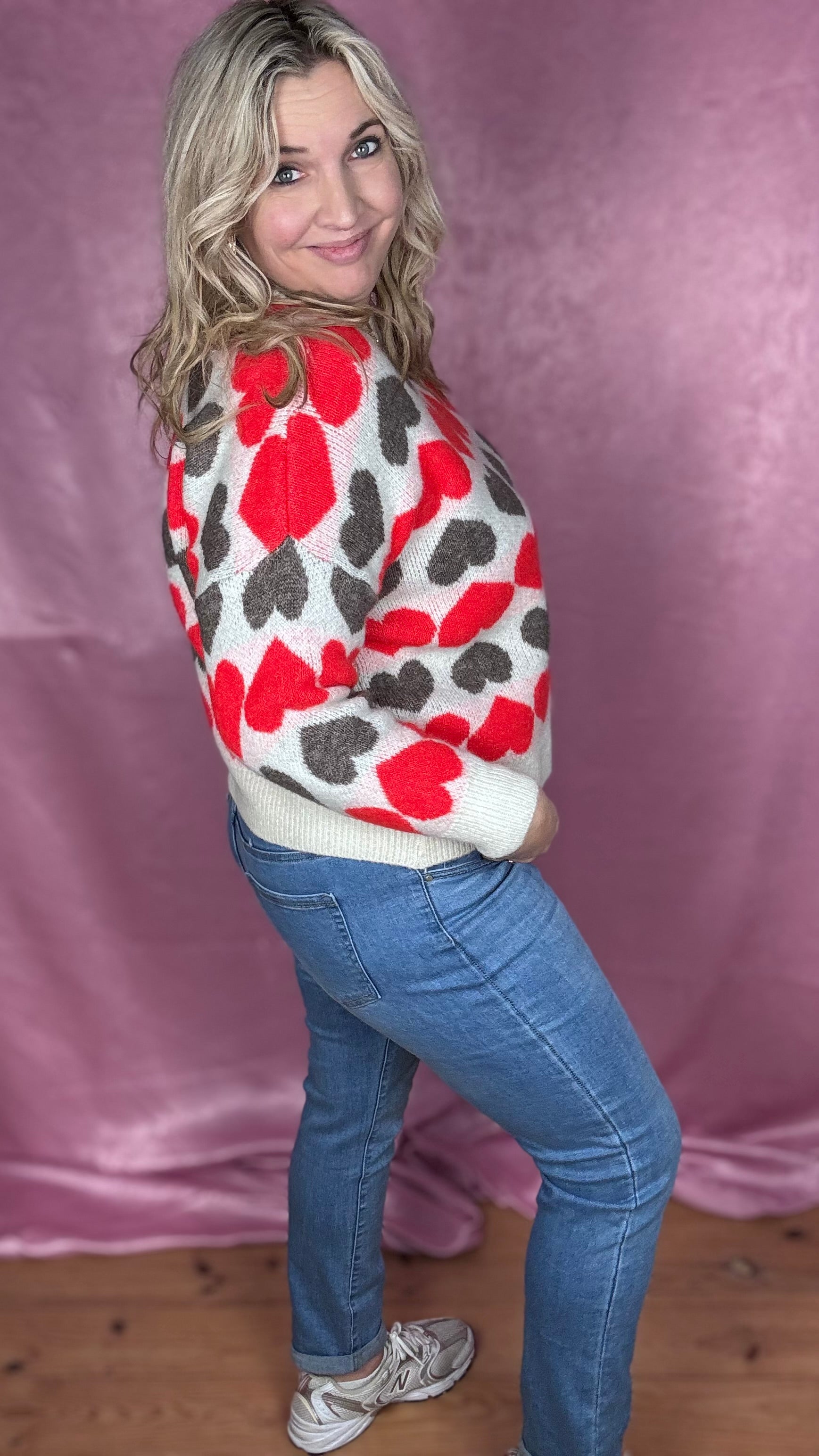 Sharon is 174 cm en draagt hier maat 48