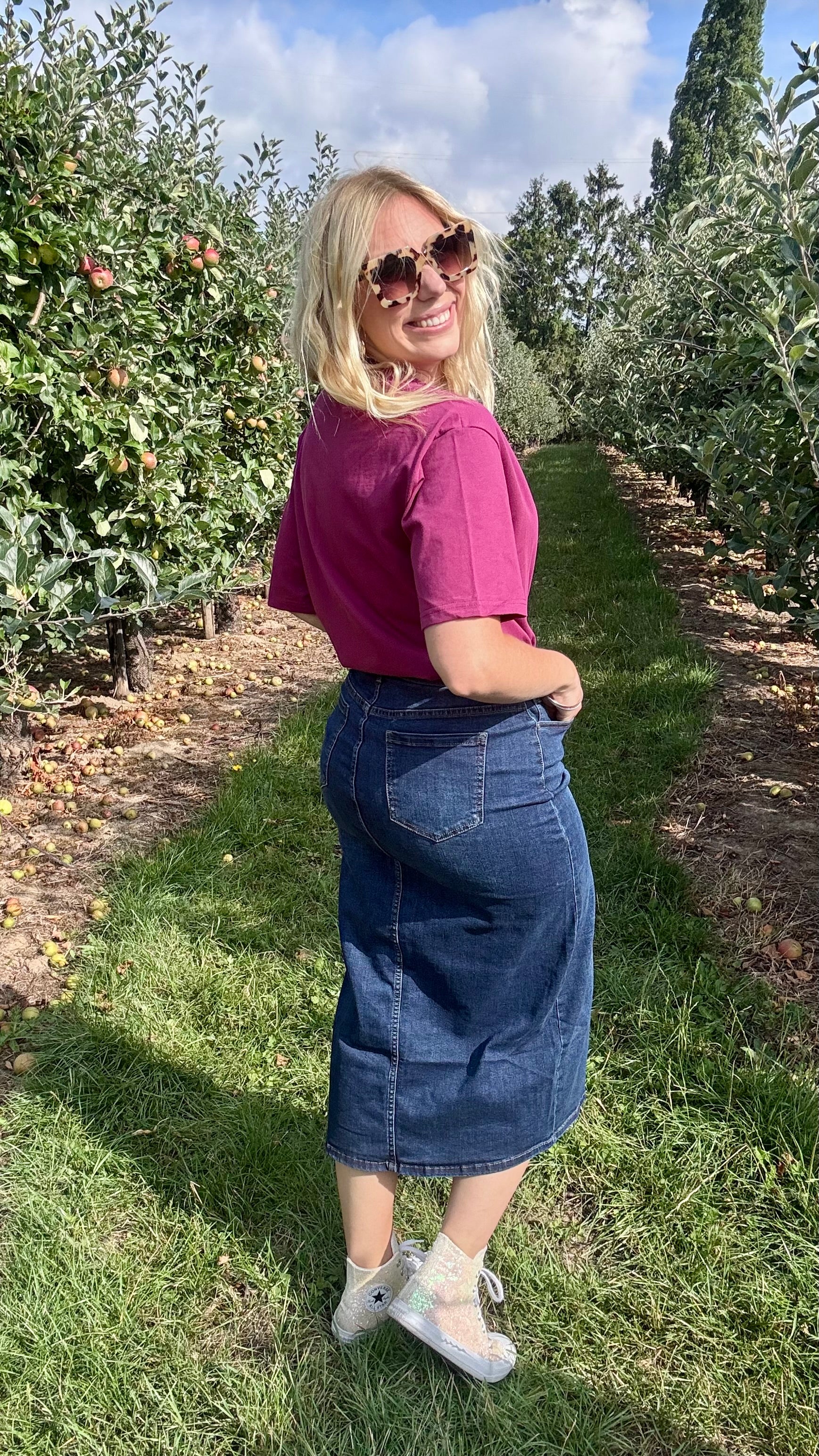 - Sharon (blond haar) is 174cm groot en heeft doorgaans maat 44