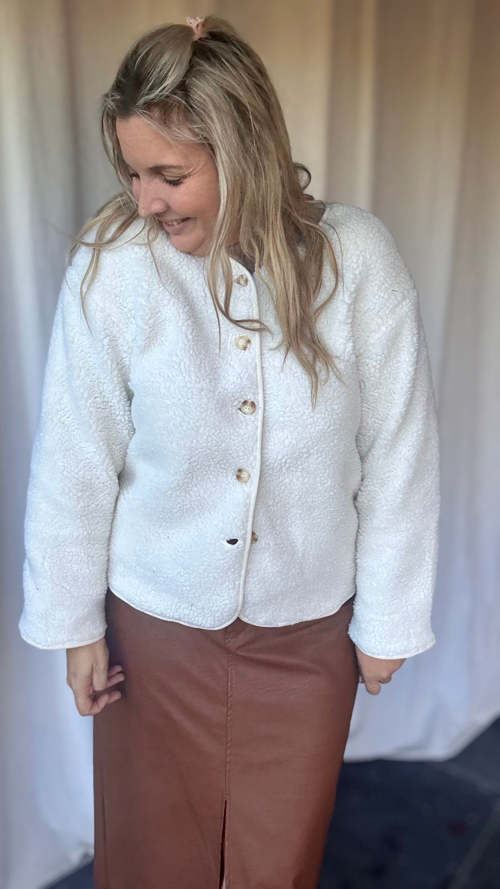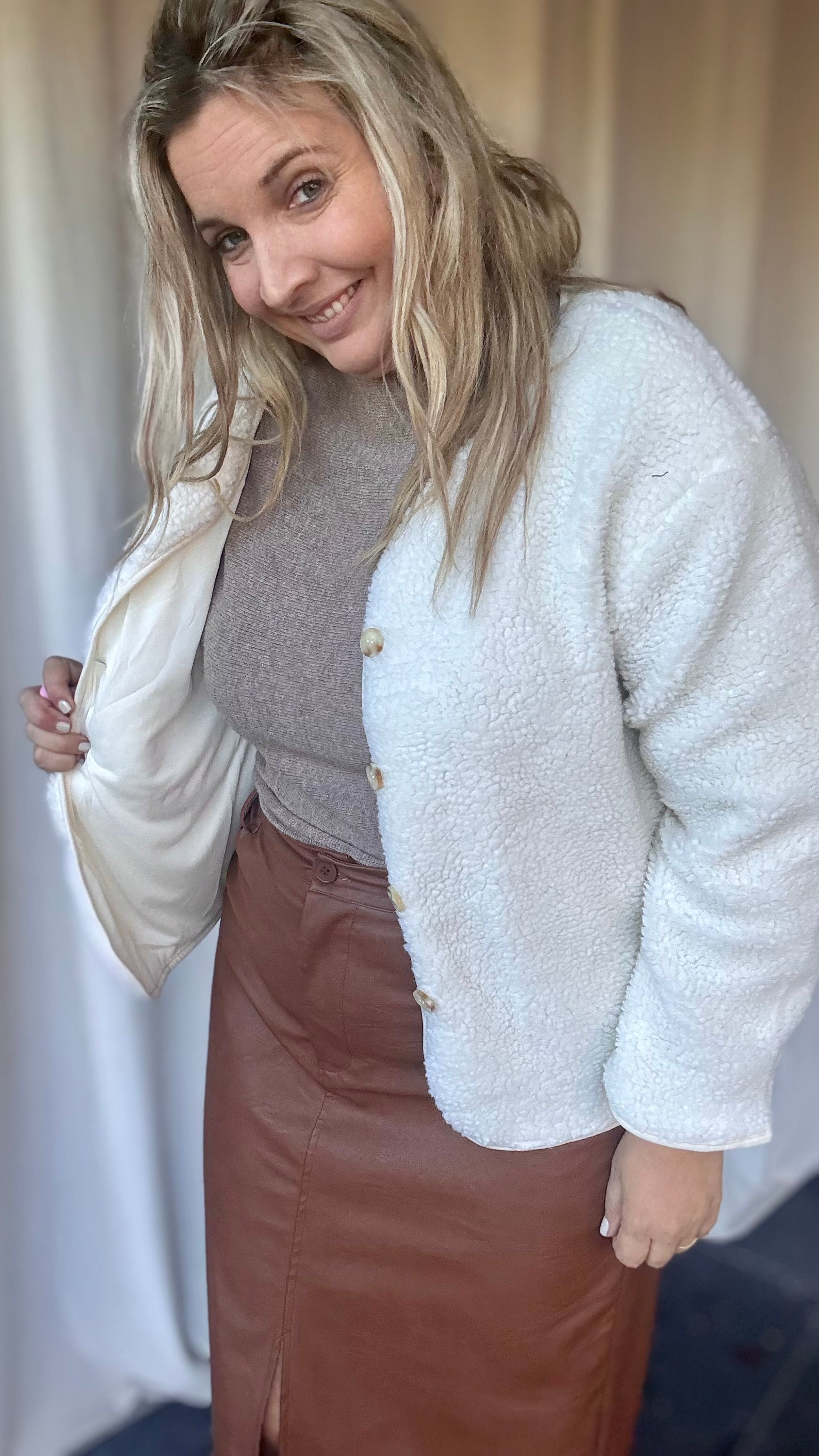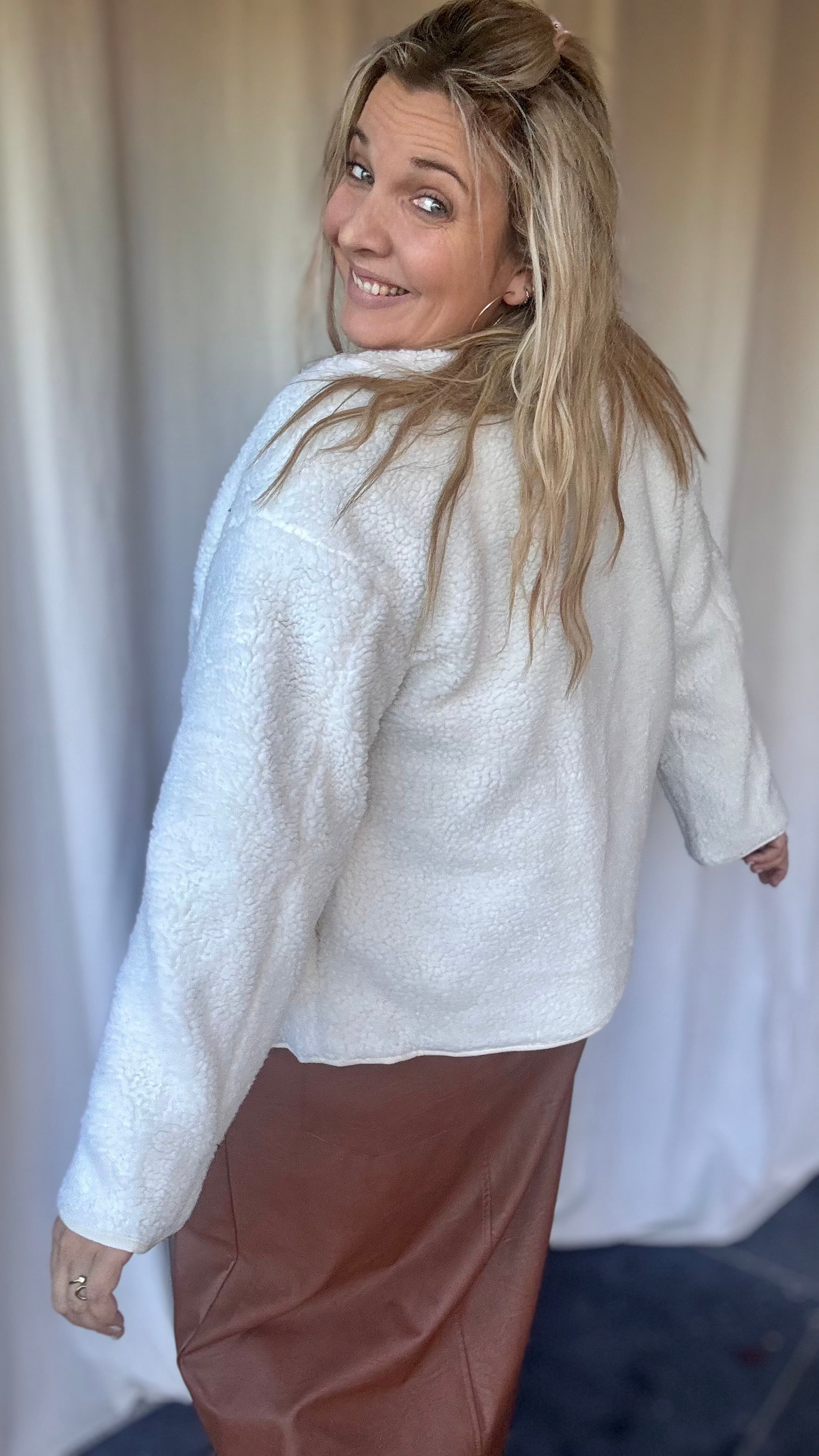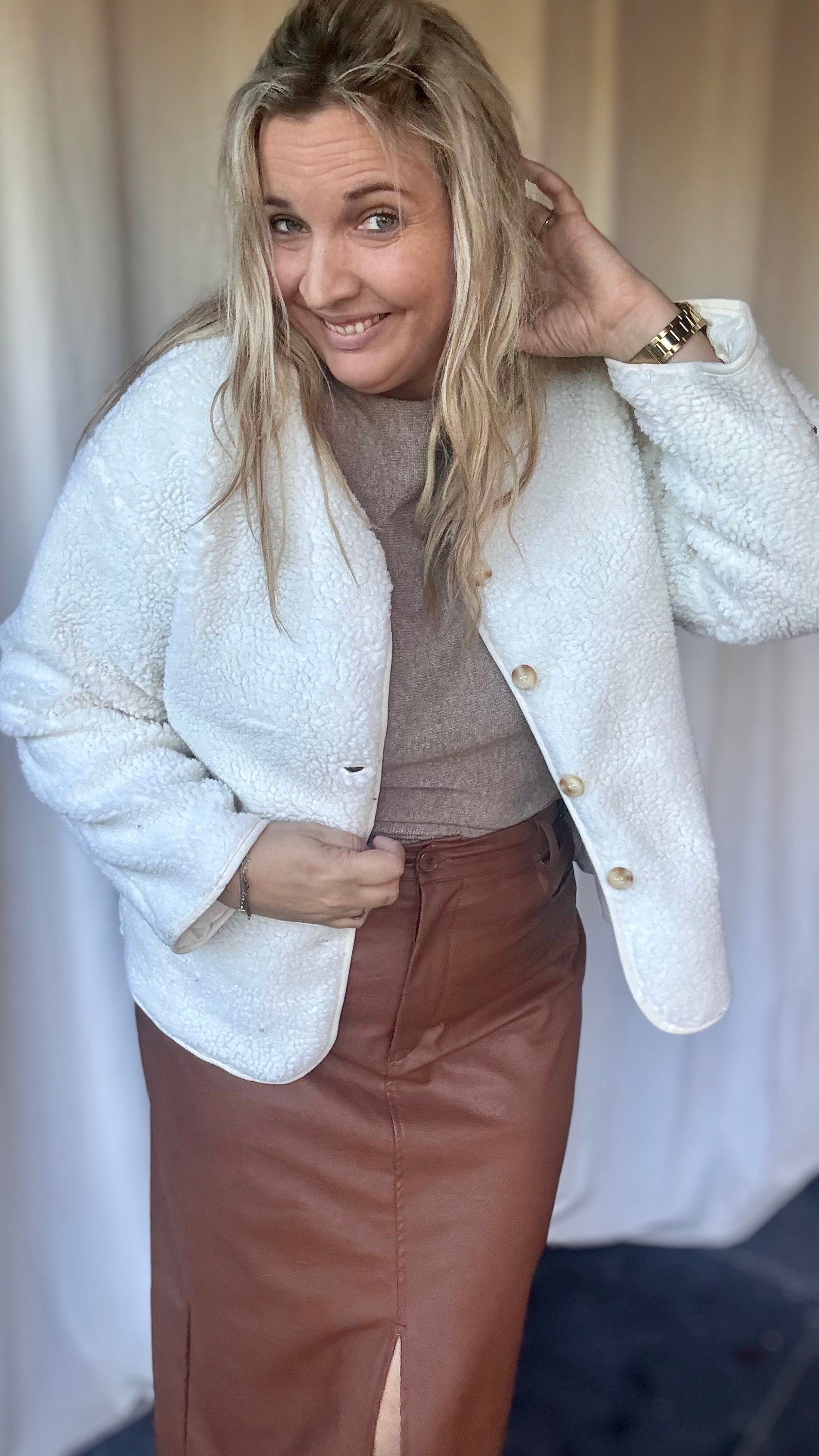 Met z’n zachte teddy buitenkant en volledige voering houdt deze jas je heerlijk warm op frisse dagen. De ruime pasvorm zorgt voor een comfy, nonchalante look – perfect over je favoriete trui of sweater. En ja hoor, hij heeft praktische zakken voor koude handjes of je telefoon.